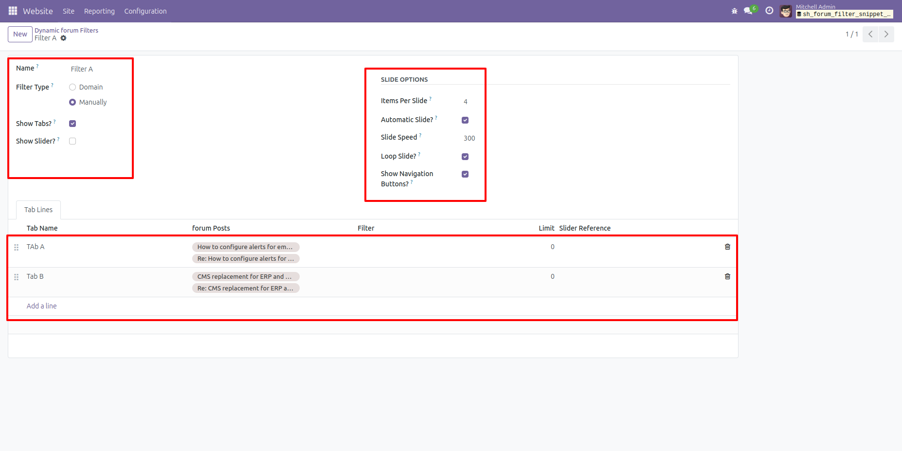 Dynamic Product Filter by "Manually", You have to define filter as per your requirement and define tab with Forum Posts.