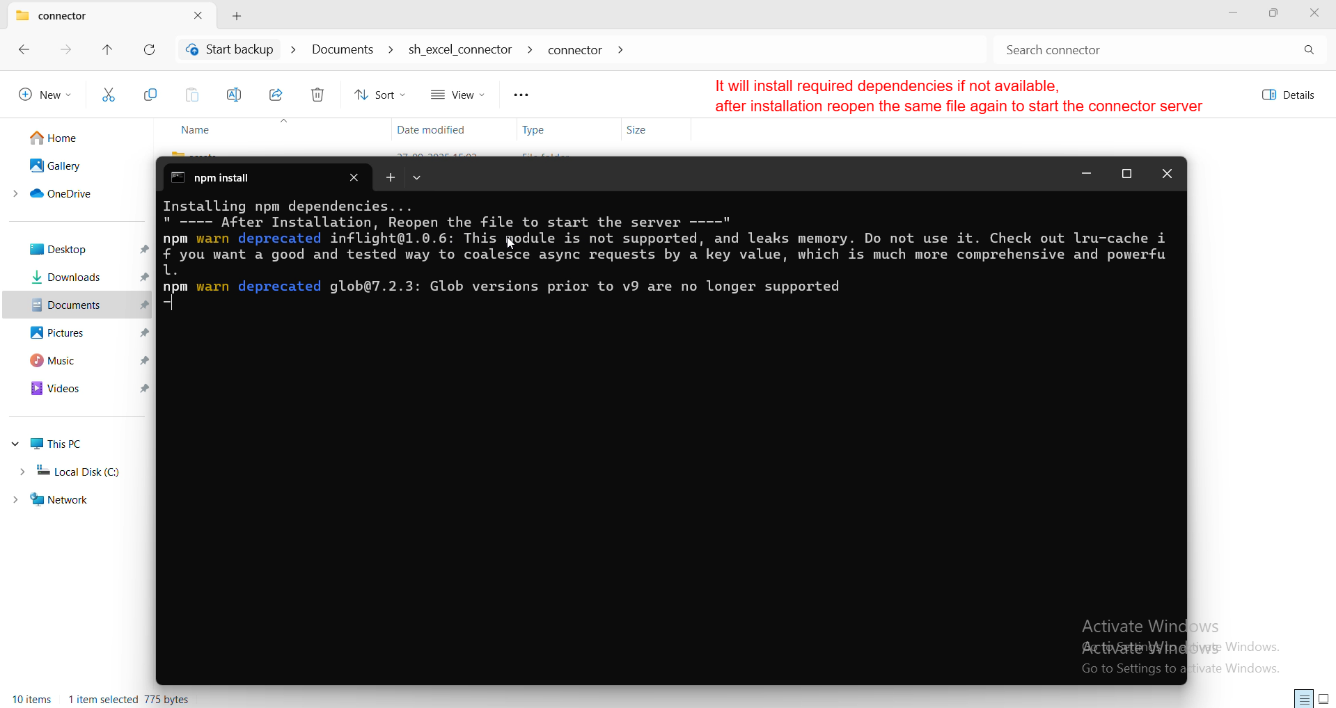 It will automatically install all required dependencies, and once the installation finishes, you just reopen the same file to start the connector server.