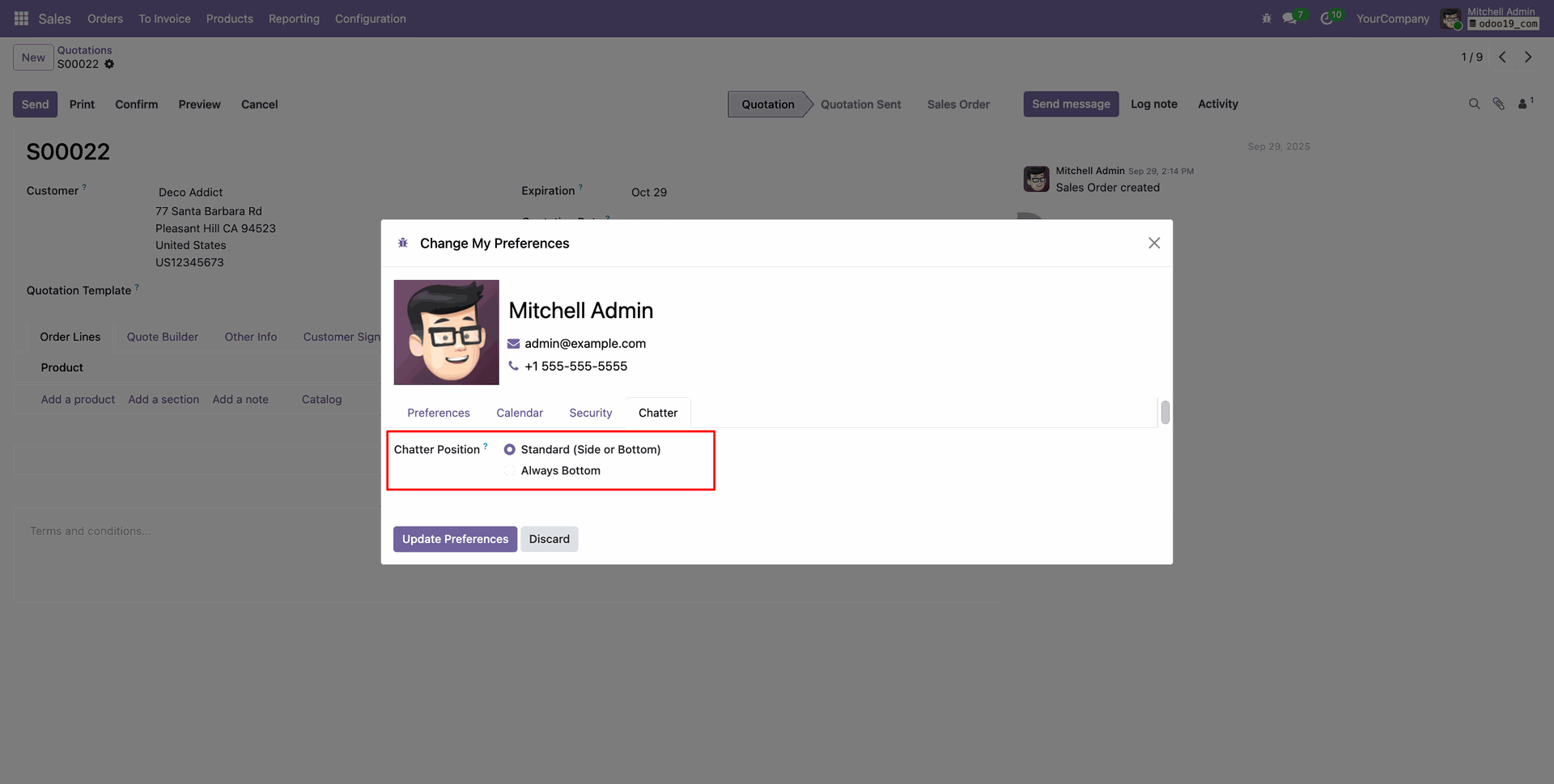Are you tired to adjusting the screen to see a larger view? We have the perfect solution for you! With this module, you can move the chatter to the side to make the form view bigger, or keep it fixed at the bottom at all times.