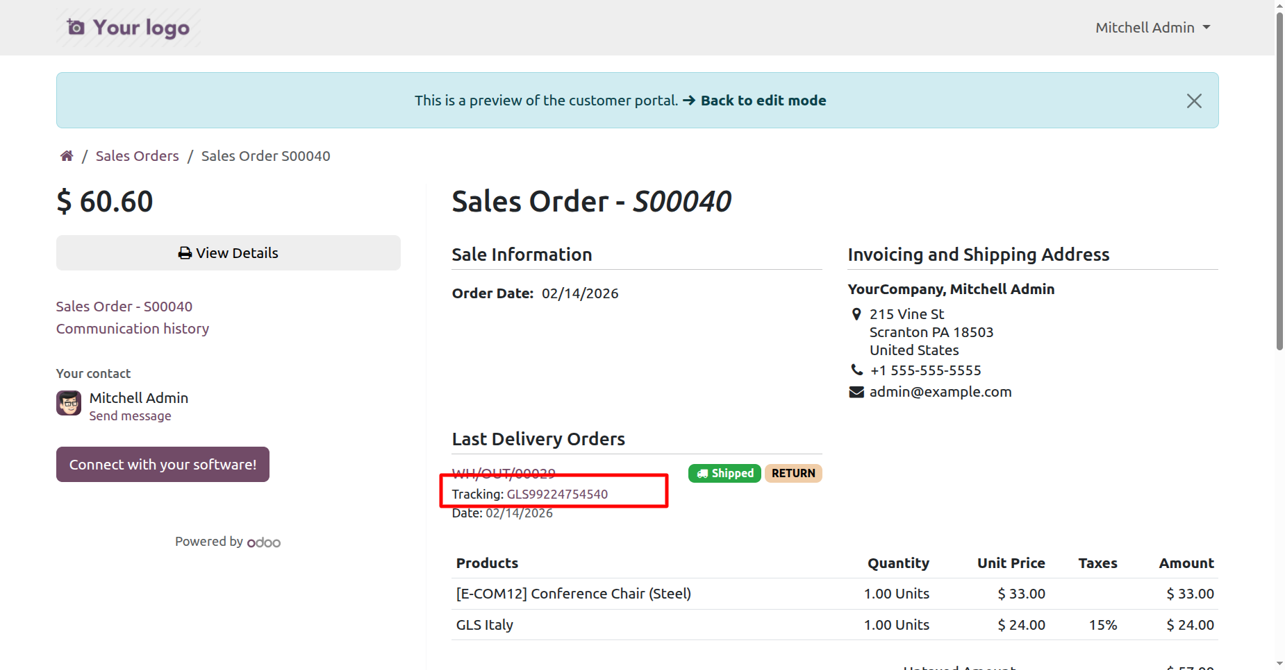 The GLS Shipping Integration module connects your Odoo system directly with GLS to automate your complete shipping workflow. From quotation to delivery, every step is streamlined with real-time communication. Users can add shipping methods, fetch accurate live rates, confirm orders, generate GLS labels, track shipments, and cancel shipments directly from Odoo without switching platforms. This integration reduces manual effort, improves dispatch accuracy, and ensures a smooth, fast, and reliable order-to-shipment process for businesses of any size.