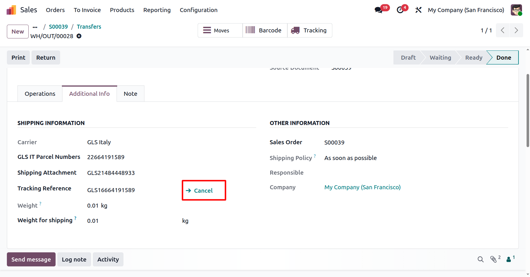 Cancel GLS shipments instantly from Odoo to avoid incorrect deliveries and maintain accurate shipping records.