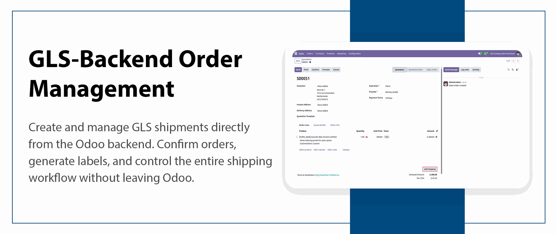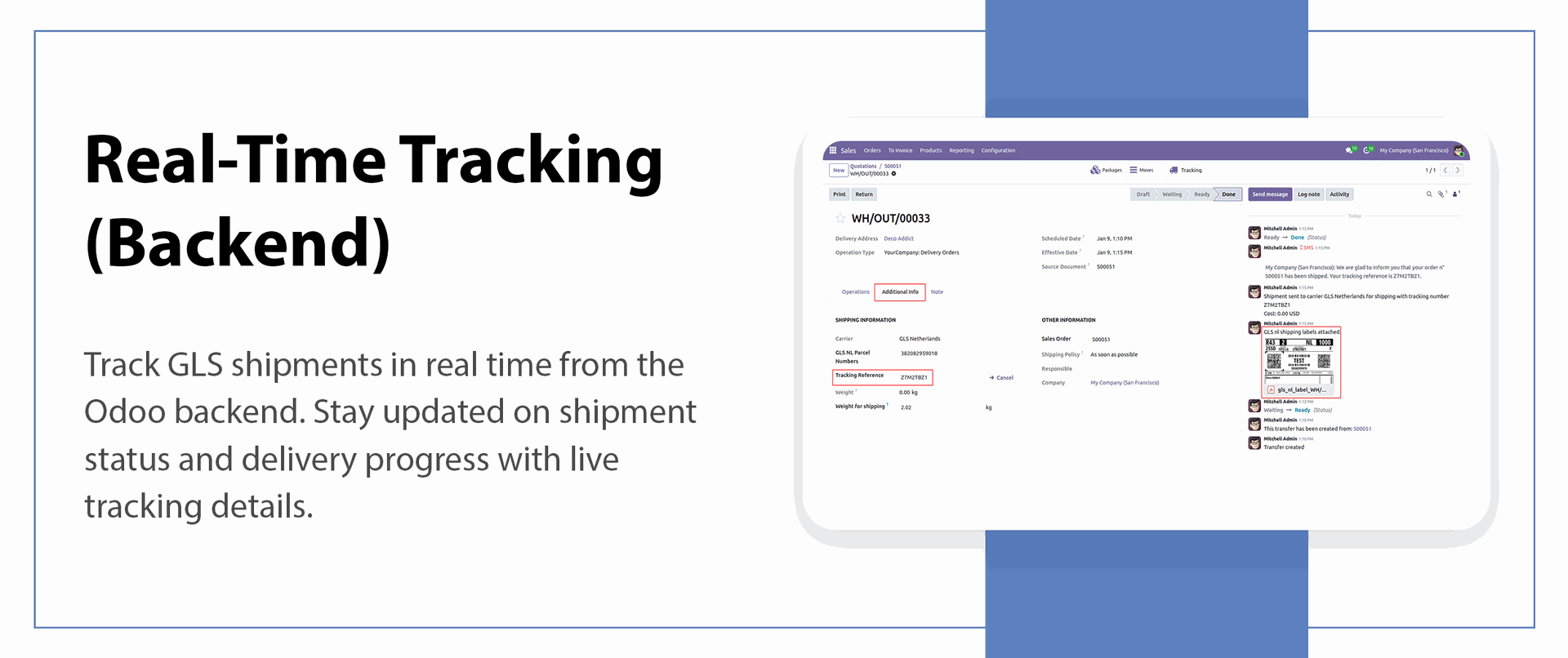 Real-time integration for instant data sync between Odoo and GLS.