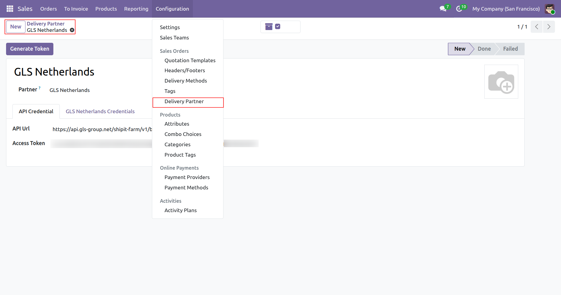 Go to the Sales ==> Delivery Partner.