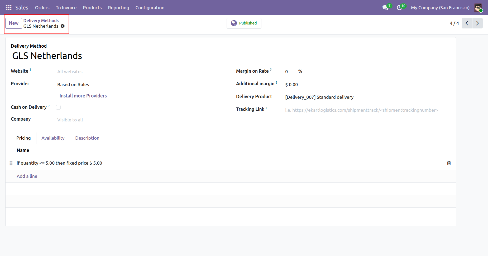 Configure standard delivery using flexible rules and weight-based conditions to automatically calculate accurate shipping charges in Odoo.