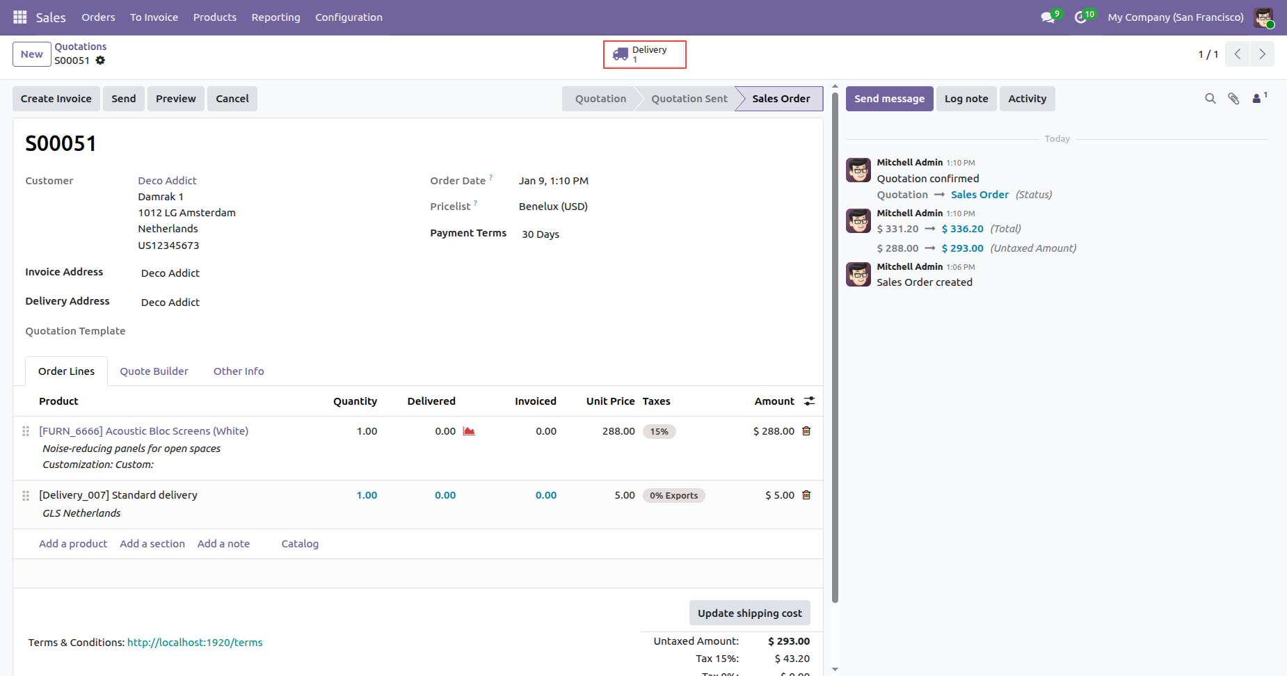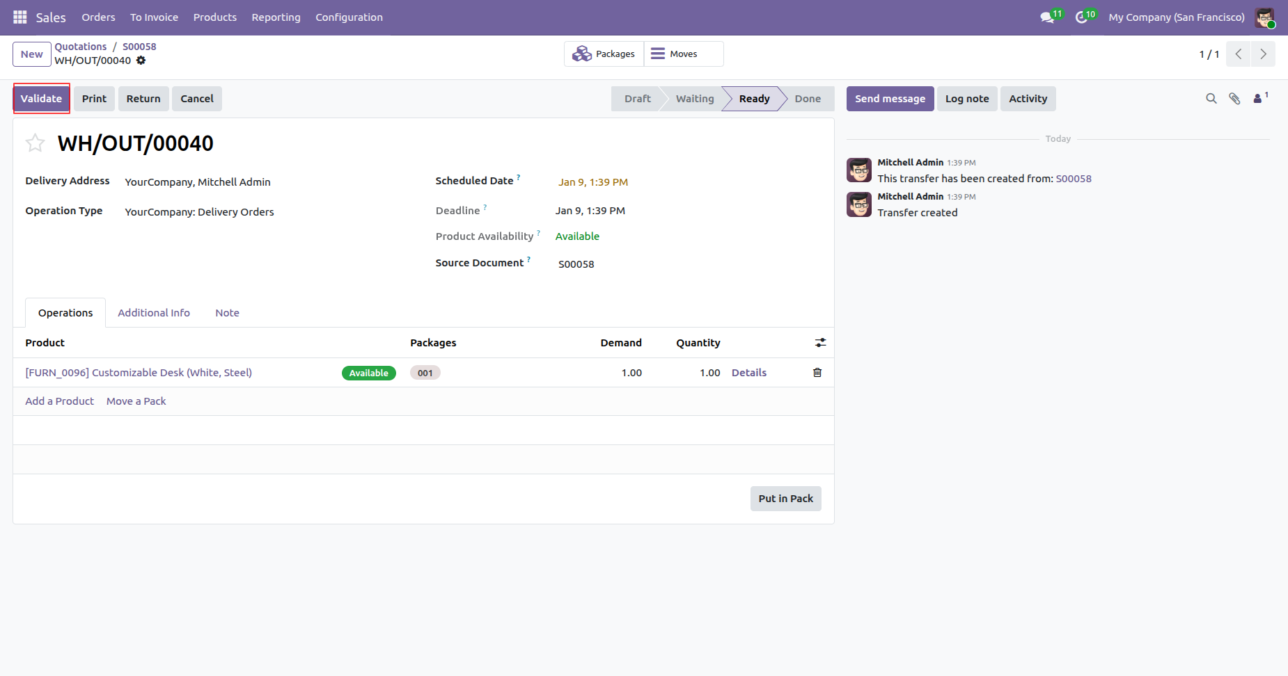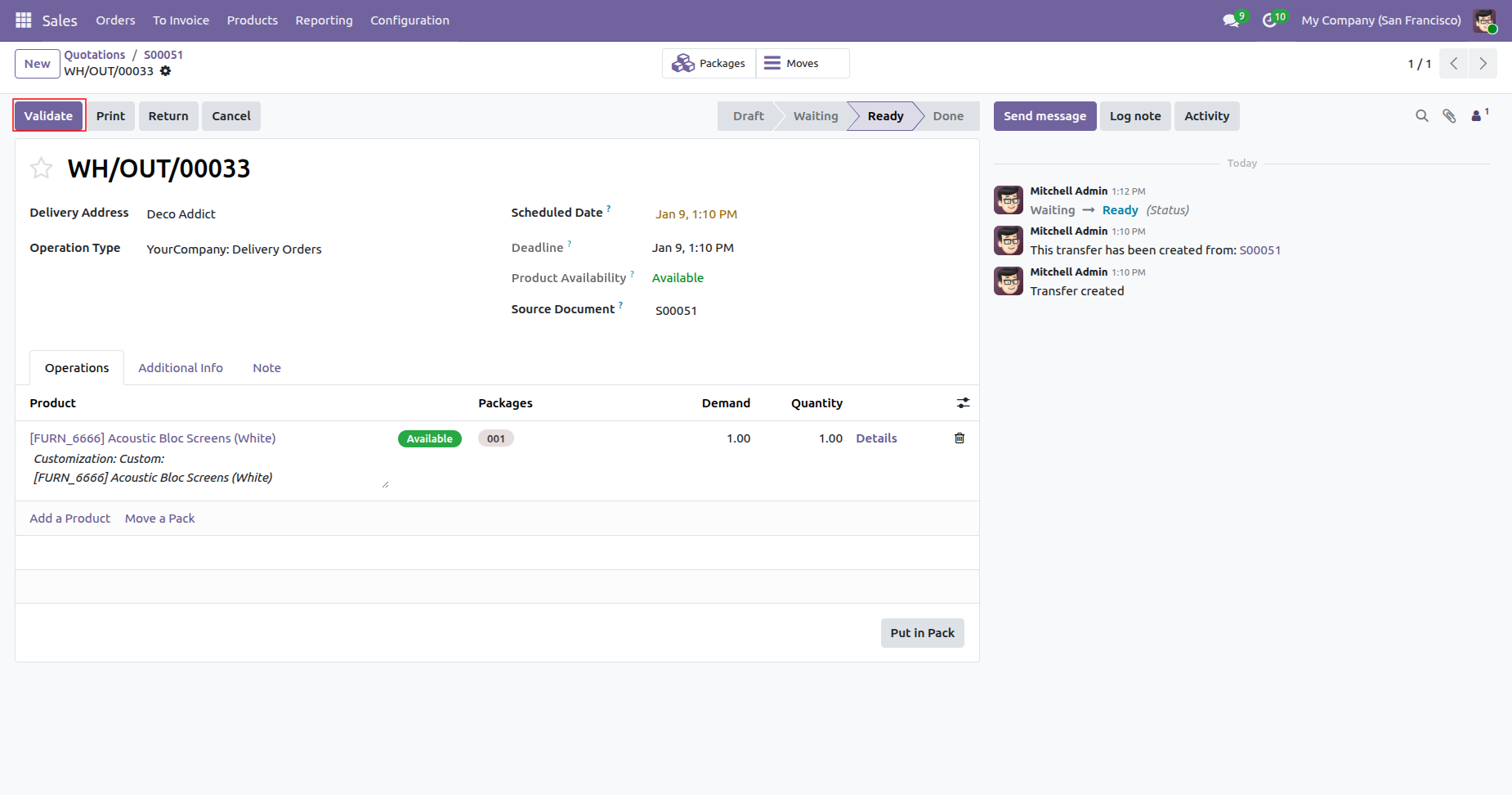 Validate the delivery order by clicking on the 'Validate' button.