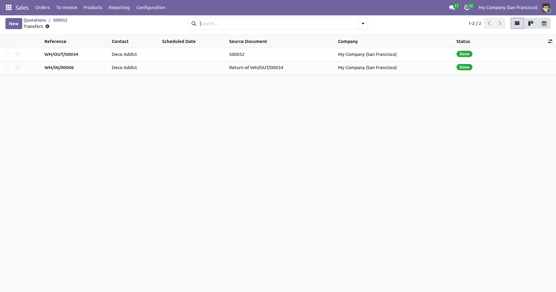 List of the transfer orders.