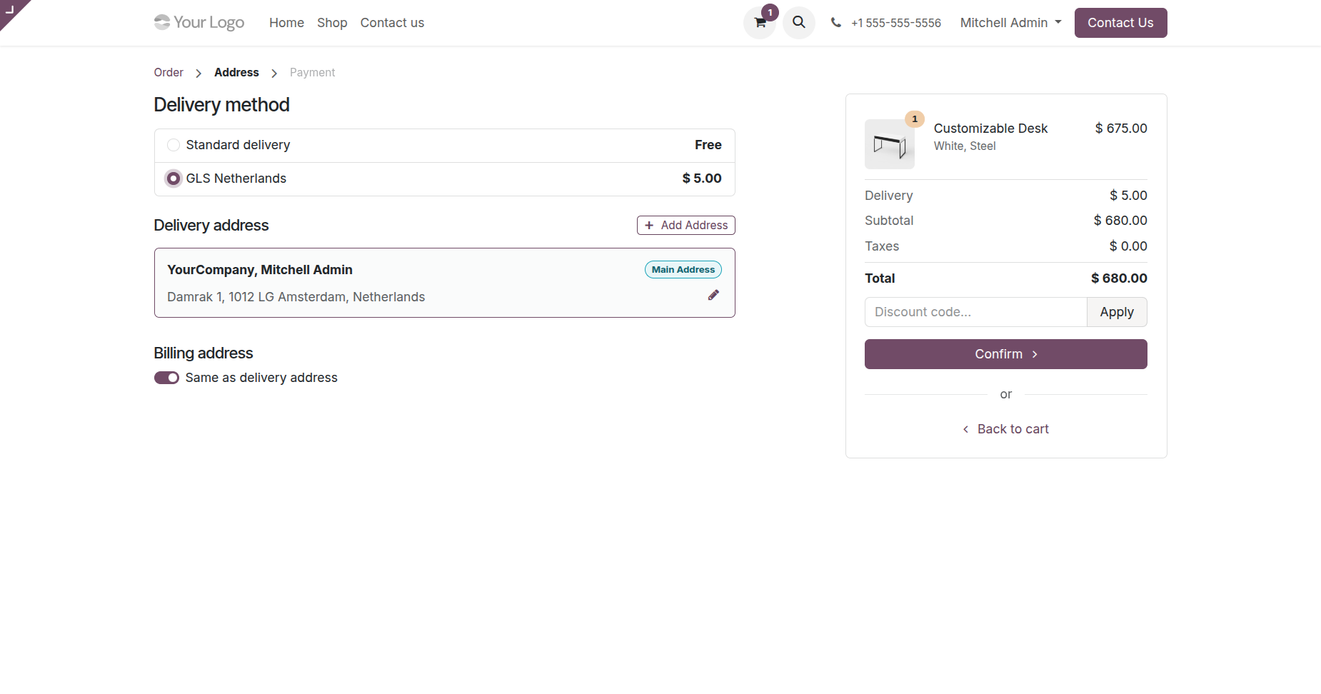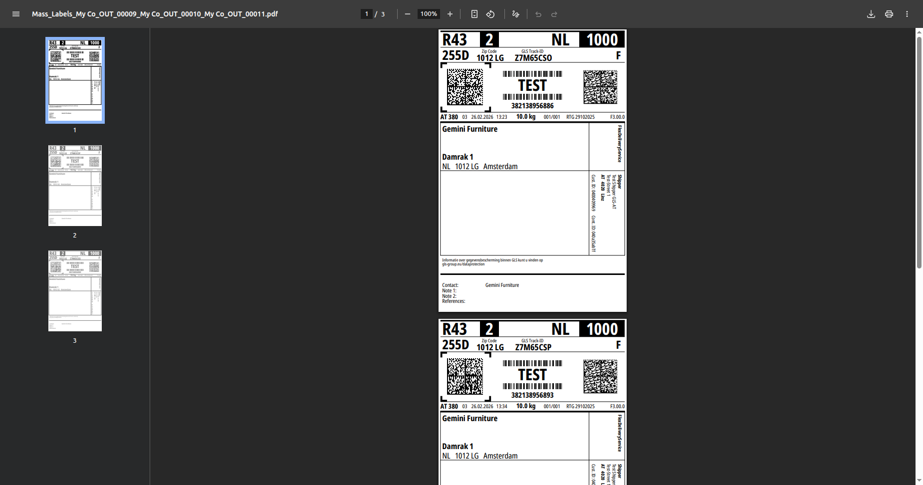 Make a delivery order, select GLS delivery method and confirm the order.