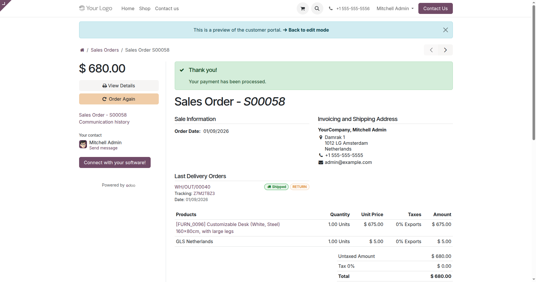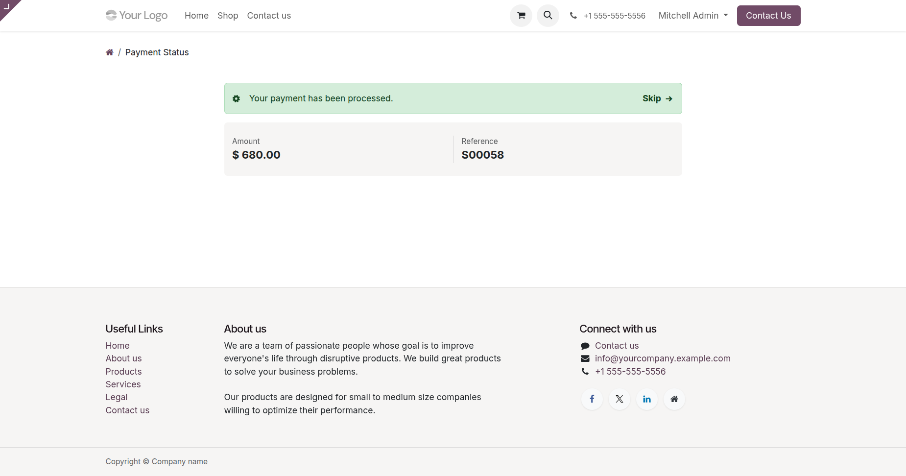 Here you can see that the payment has been processed.