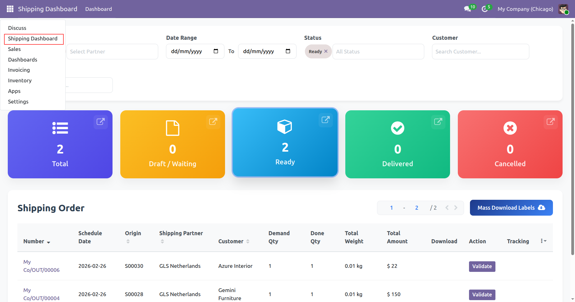 Generate multiple shipping labels in one action directly from Odoo, allowing you to process bulk delivery orders faster.