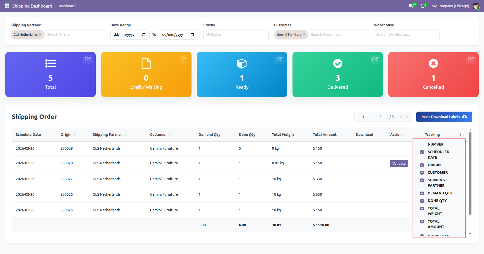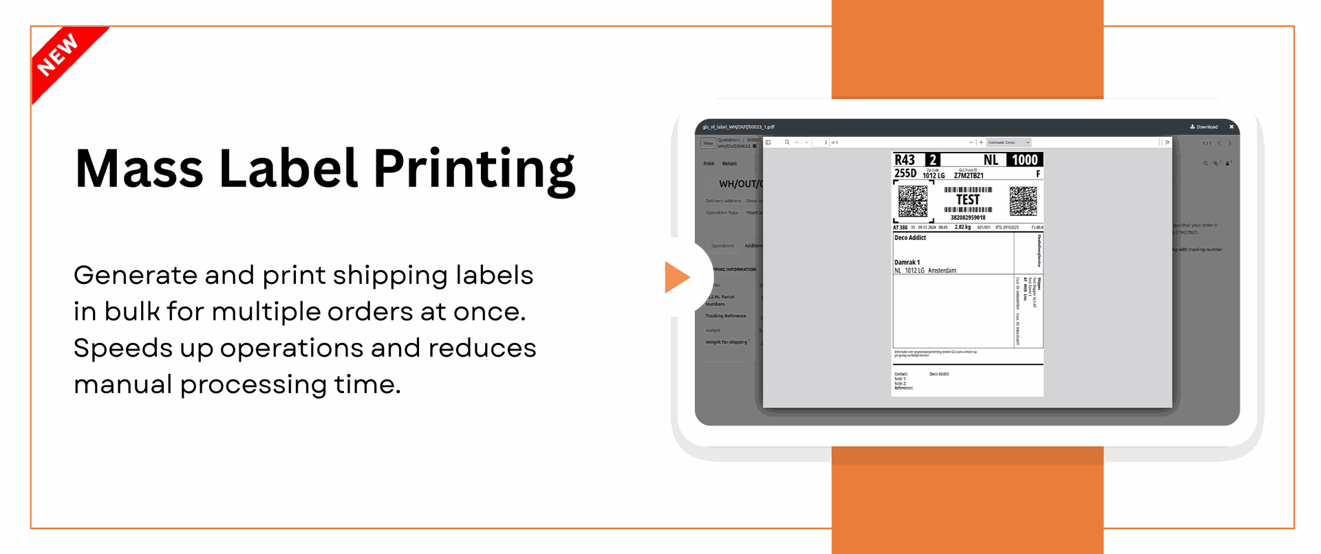 Generate multiple shipping labels in one action directly from Odoo, allowing you to process bulk delivery orders faster.