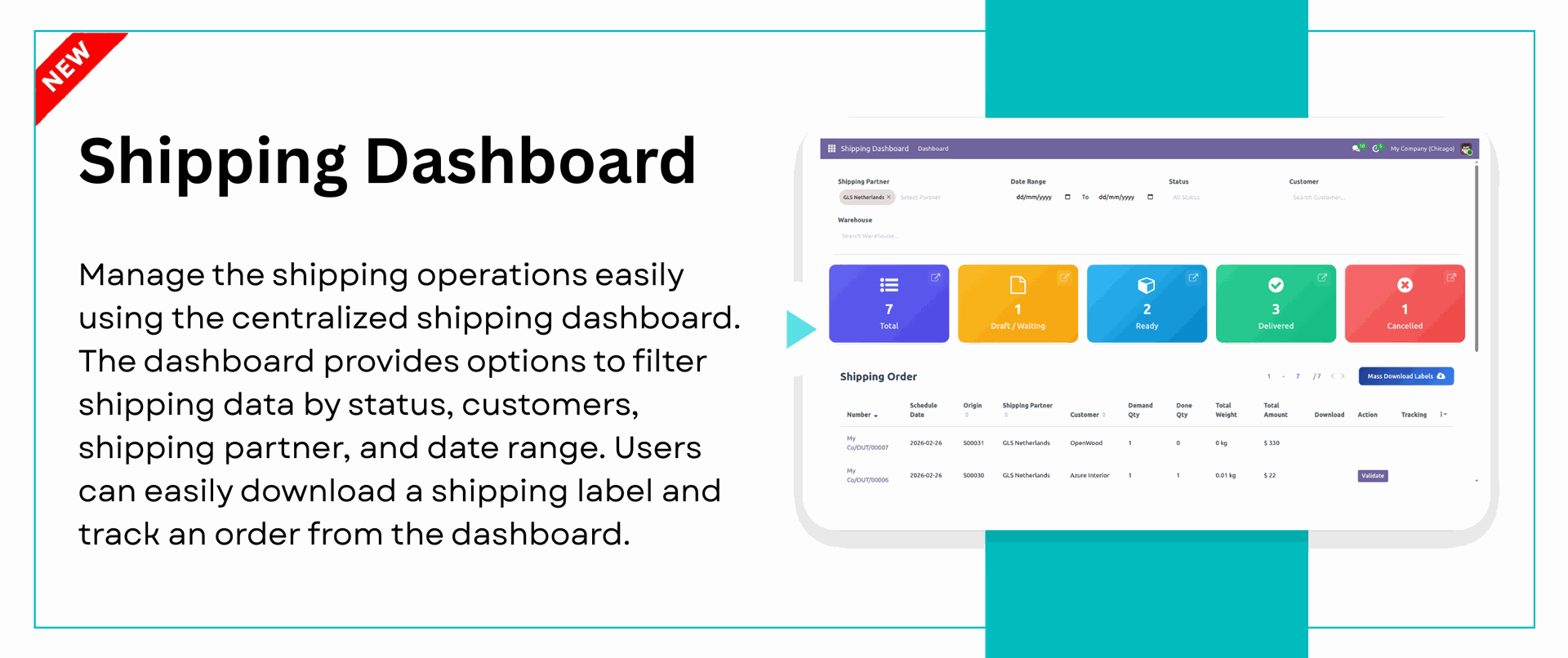 Get a centralized view of all shipping activities in one place. The dashboard provides quick operational insights.