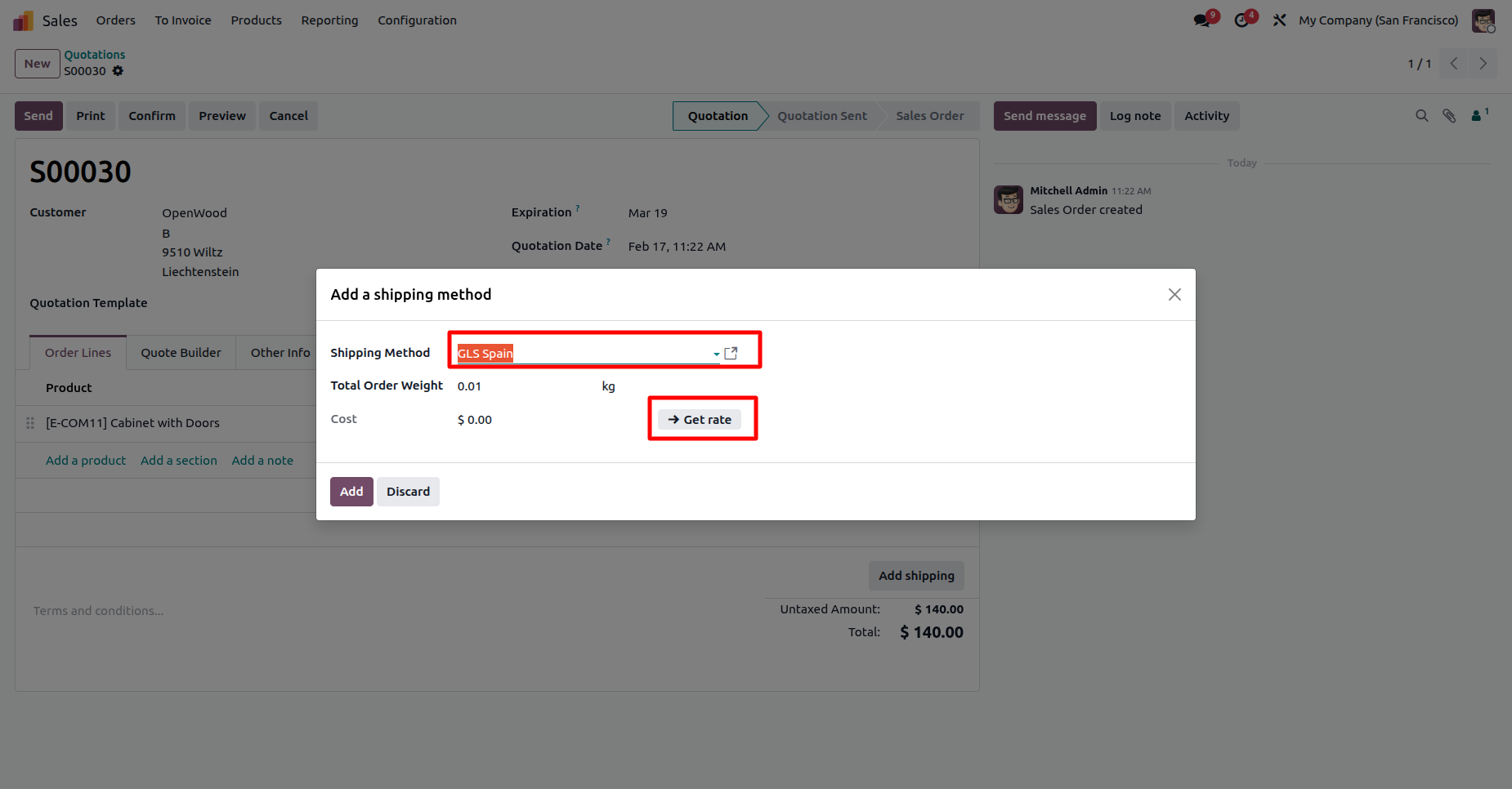Automatic rate fetching to provide live GLS shipping prices during Quotation creation.