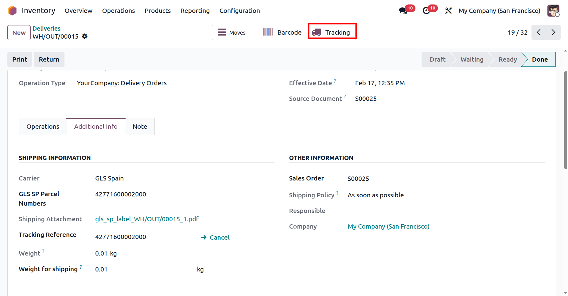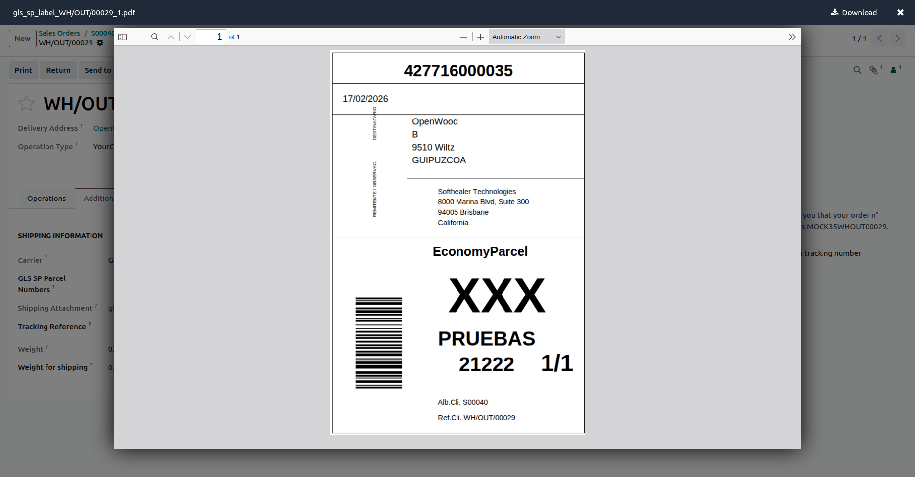 Cancel GLS shipments instantly from Odoo to avoid incorrect deliveries and maintain accurate shipping records.