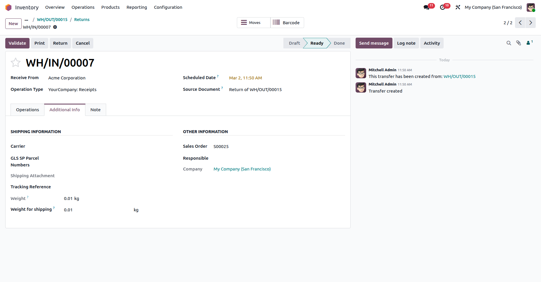 Click "Return" to return the shipment.