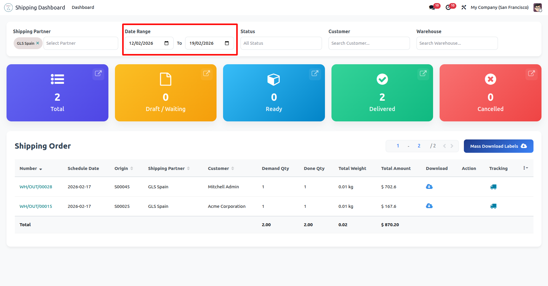 Generate multiple shipping labels in one action directly from Odoo, allowing you to process bulk delivery orders faster.