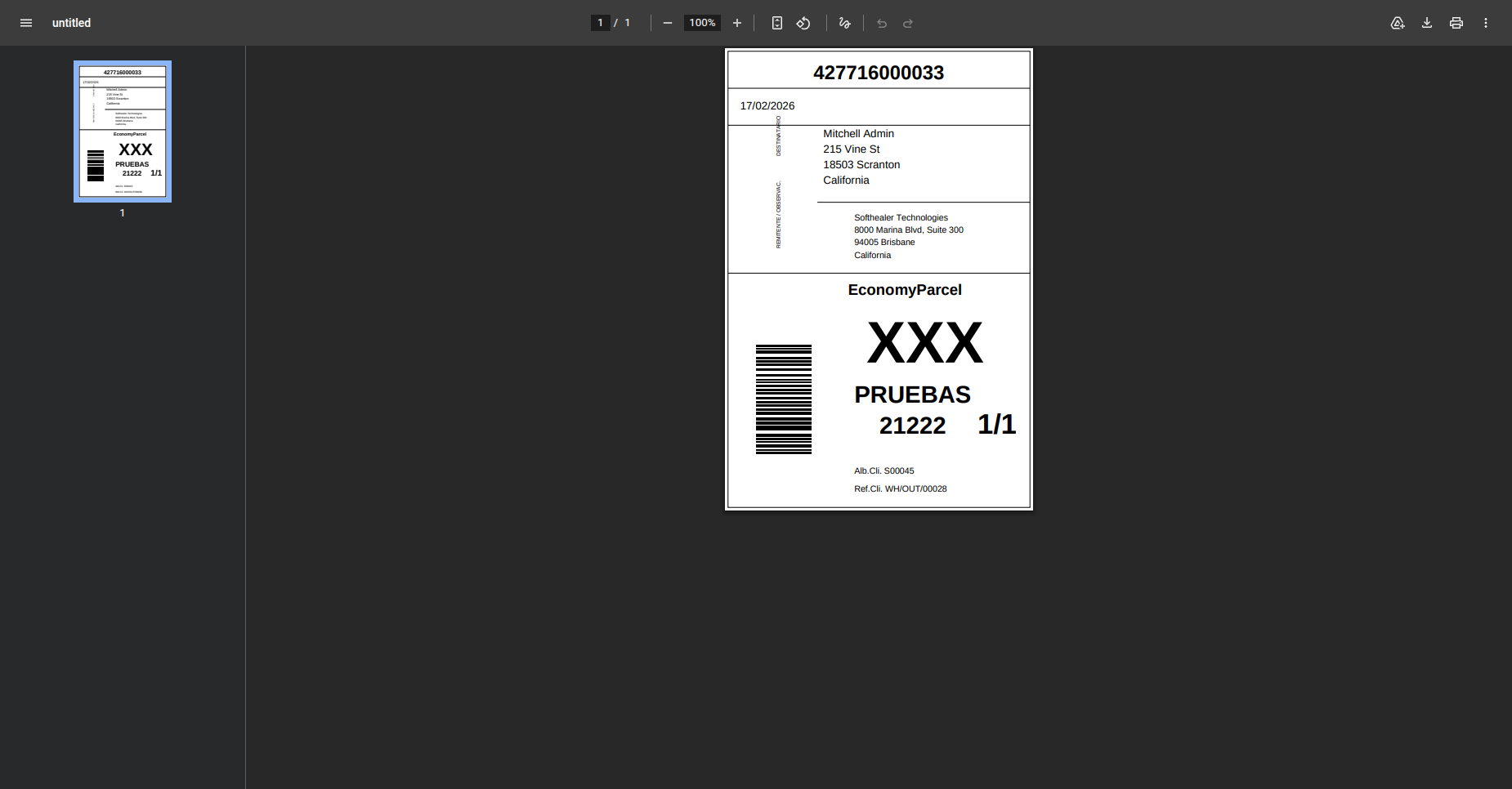 PDF view of the shipping label.