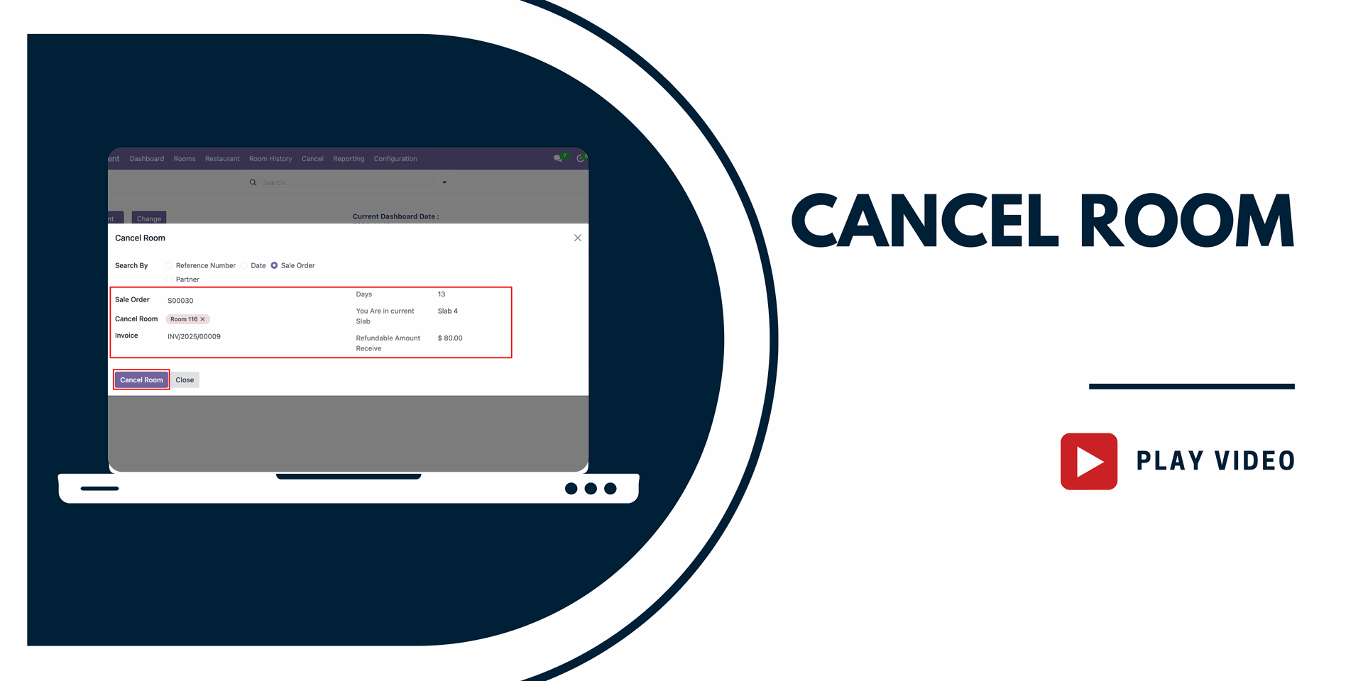 Select “Search By: Sale Order”, add the other details, and click on the “Cancel Room”