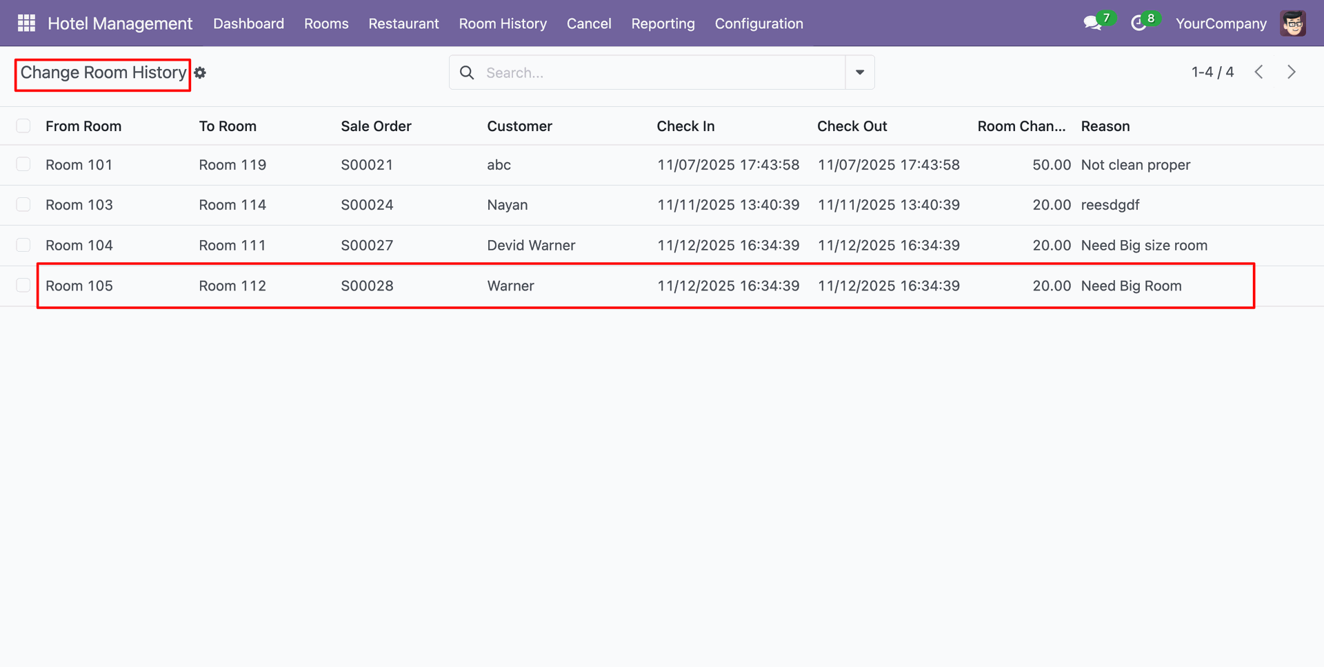 You can easily transfer room from one room to another with optional room change charges and track the complete room change history.
