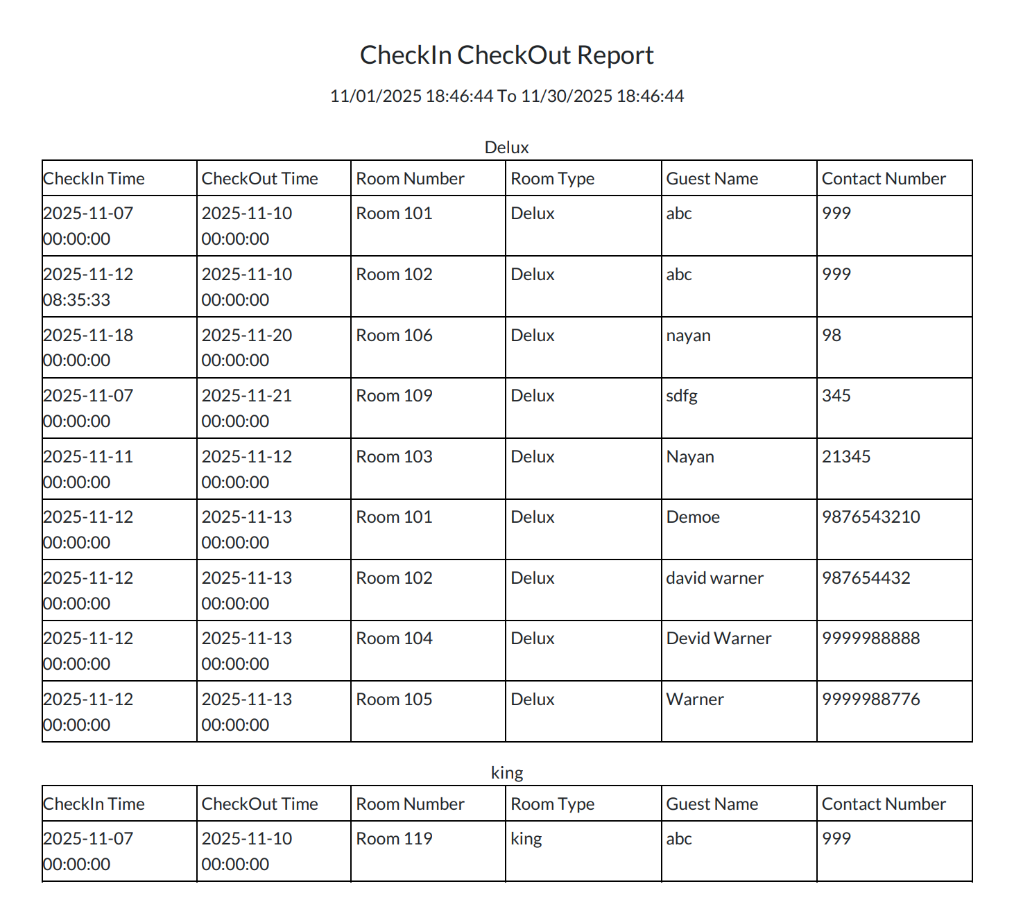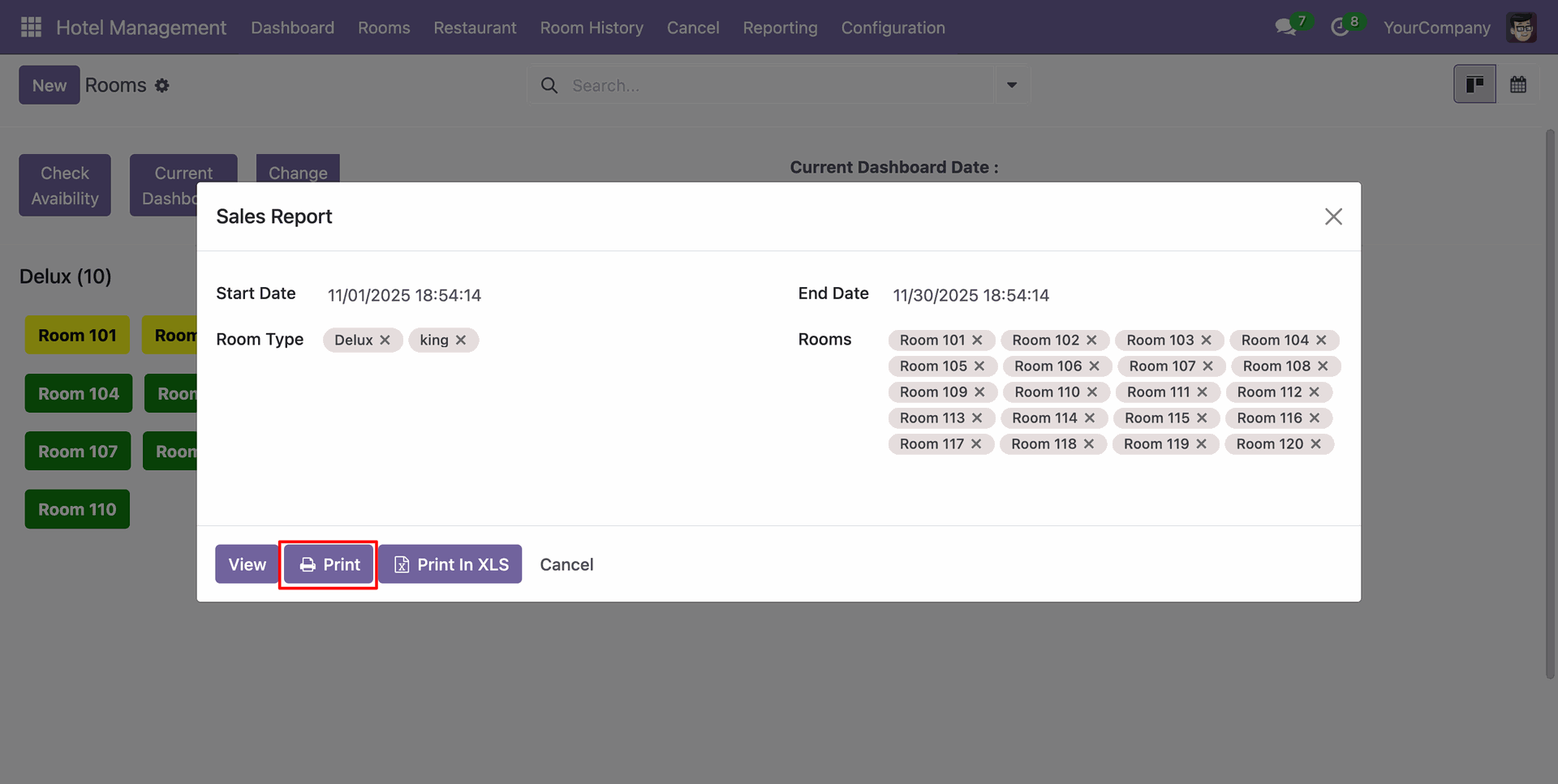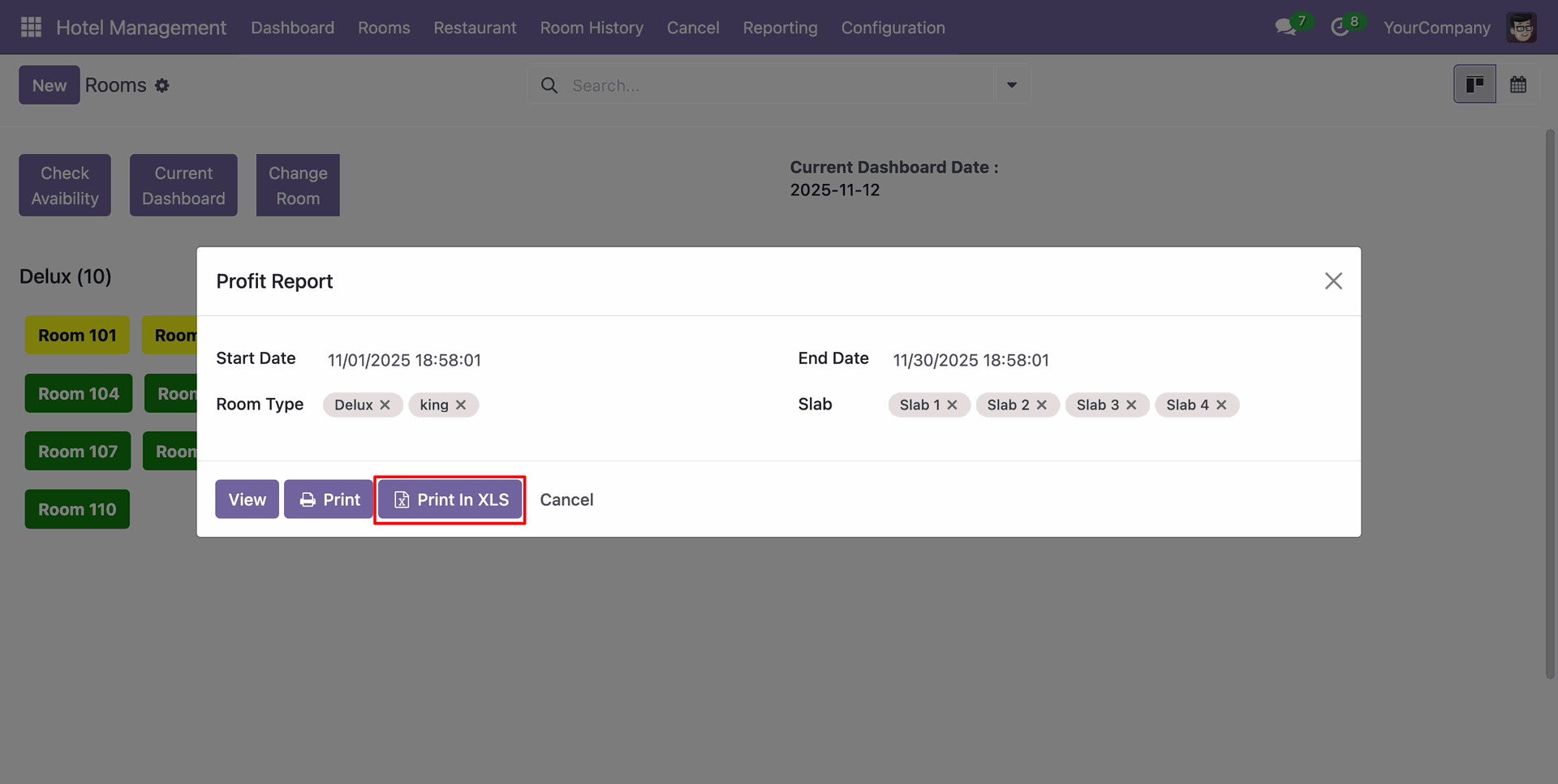 Here, you can see the dashboard, after canceling the room that room is available now for another booking.