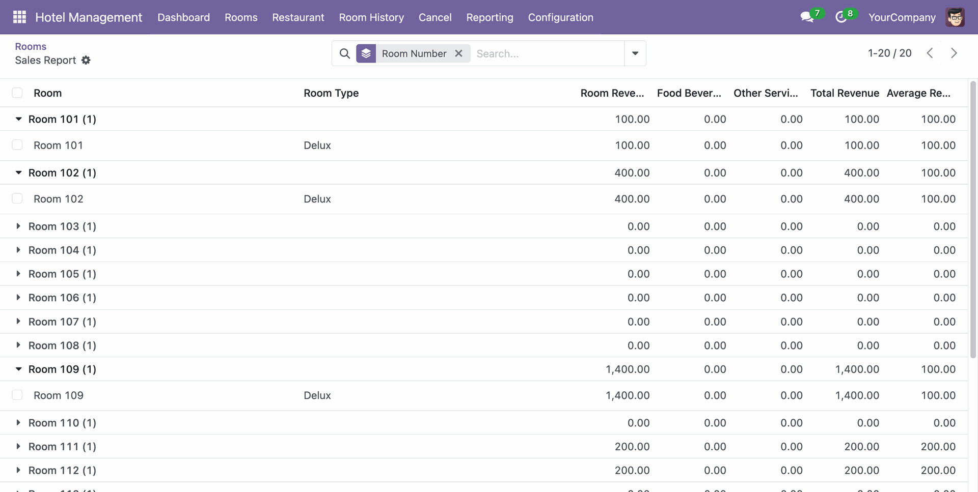 Are you looking for an efficient solution to manage your hotel operations seamlessly? Look no further! Our hotel management module is designed to meet all your needs. With this app, you can effortlessly manage rooms of various types and amenities group according to room specifications. You can instantly identify the status of each room through our colorful dashboard, where different colors represent different room statuses.