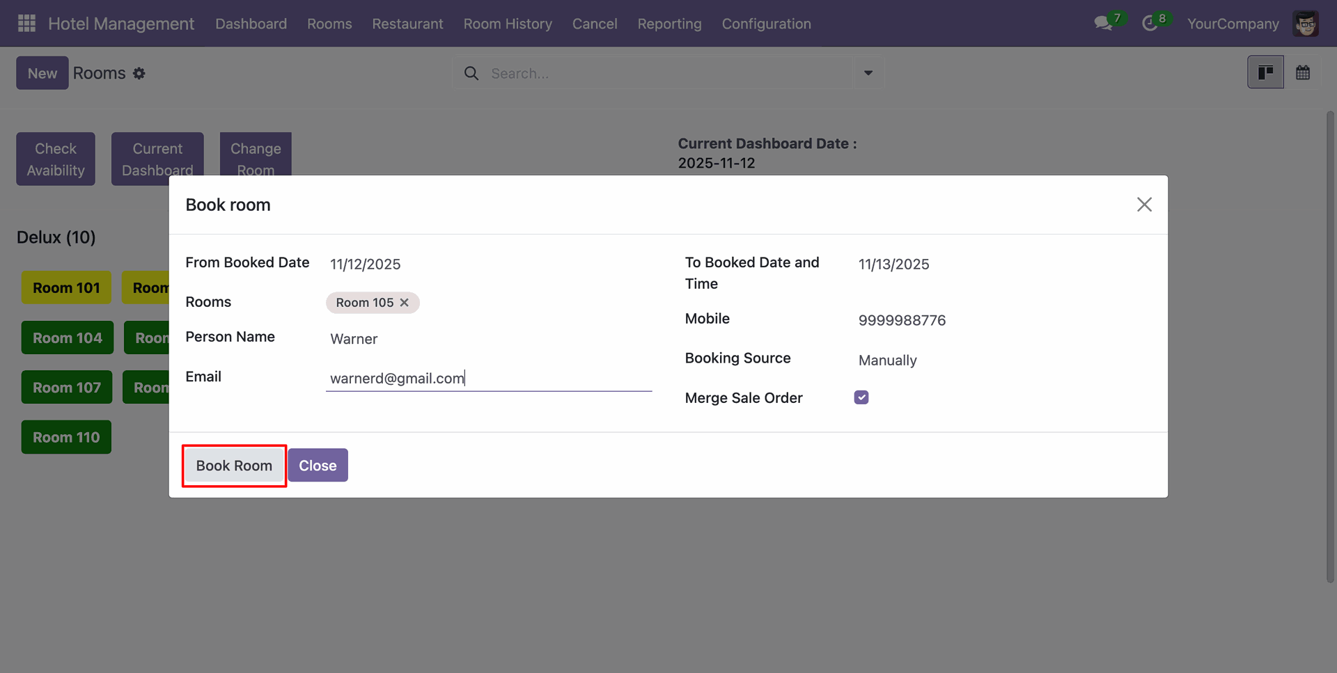 After that, Book Room wizard will appear. Fill-up the details and Click on the 'Book Room' button.