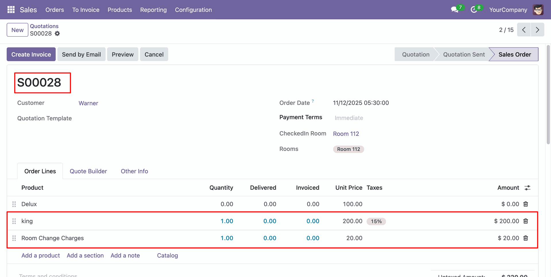 After room screenshots/Booking Flow, you can see all details in the sale order form view.