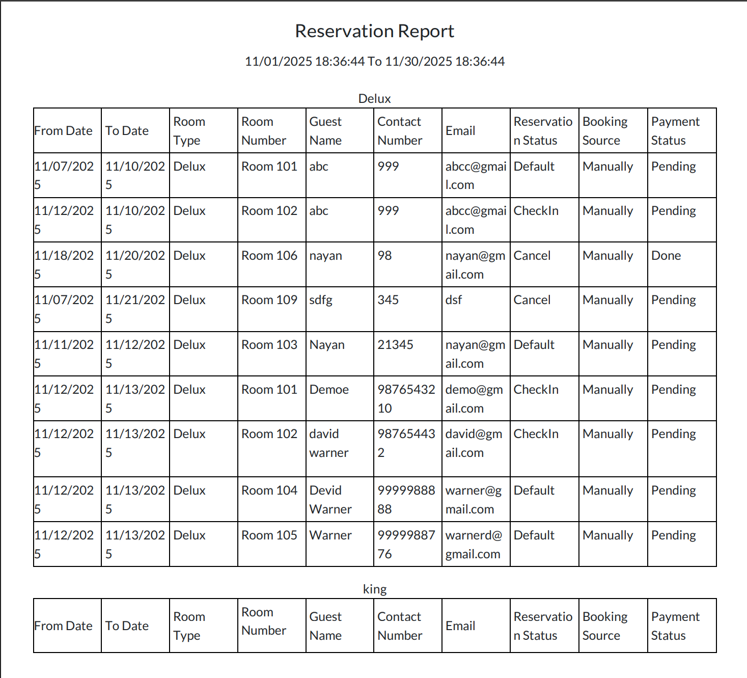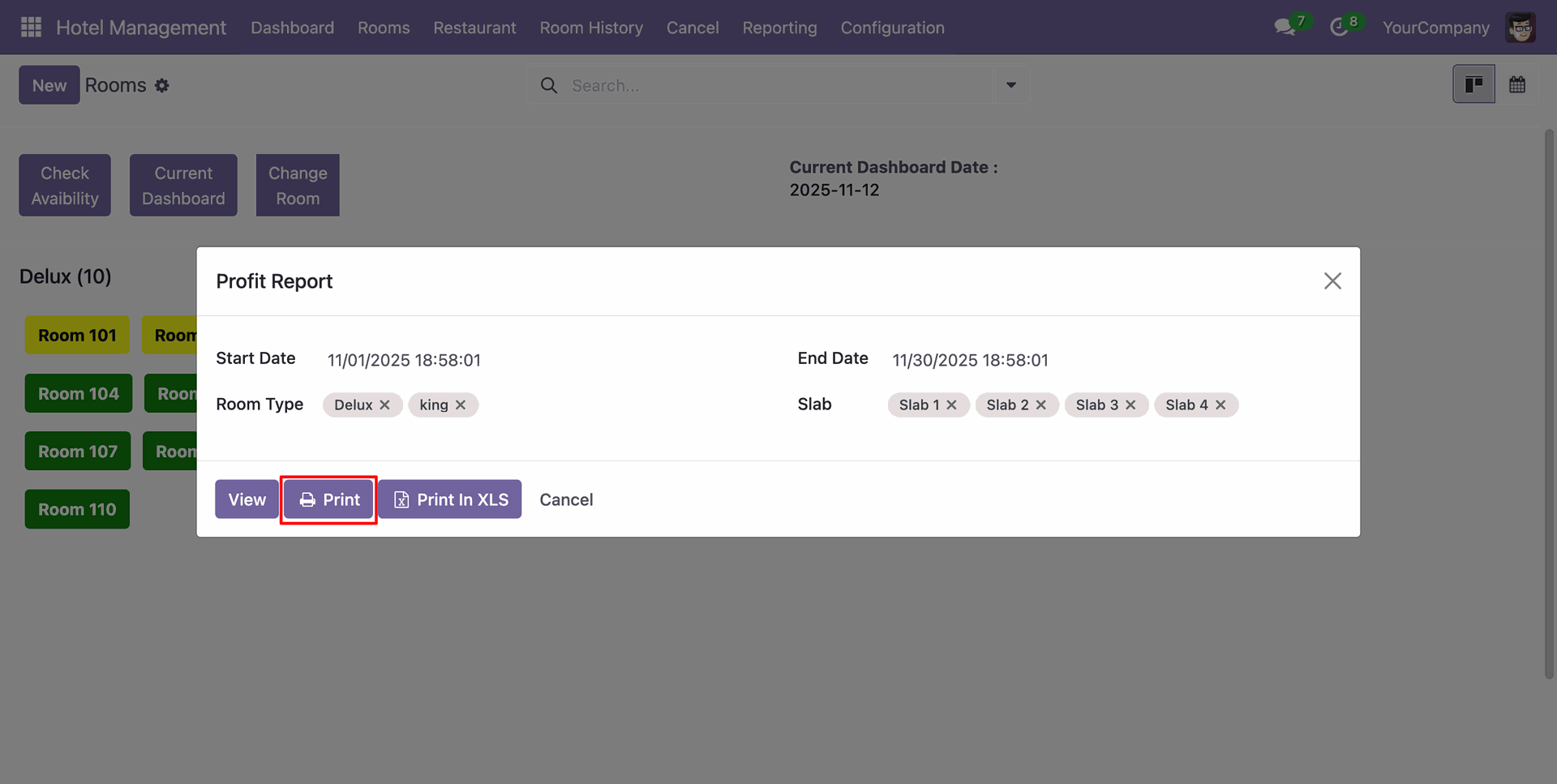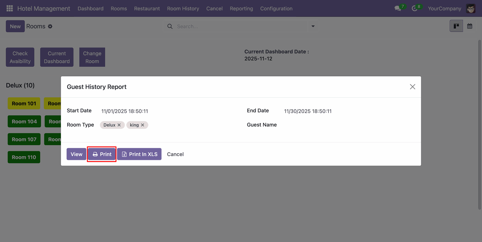 Here, you can see that "Room 105" is now available for booking, and "Room 112" is marked as Checked In.
