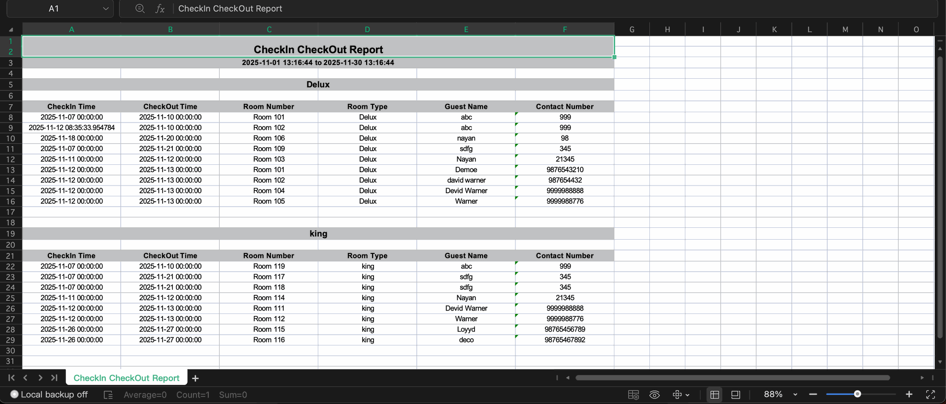 On the day of check-out, rooms will be displayed in blue color for easily identification.