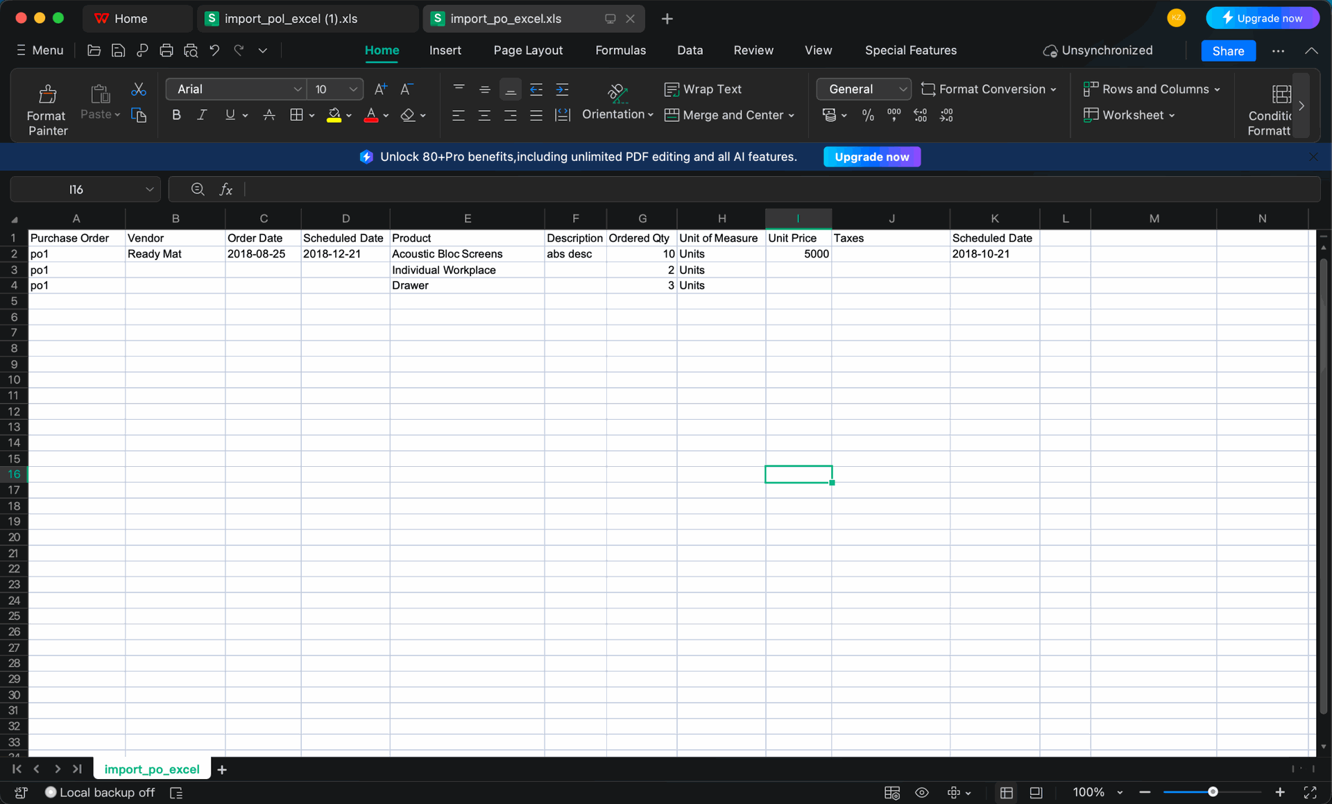 Import Purchase Order from CSV/Excel file