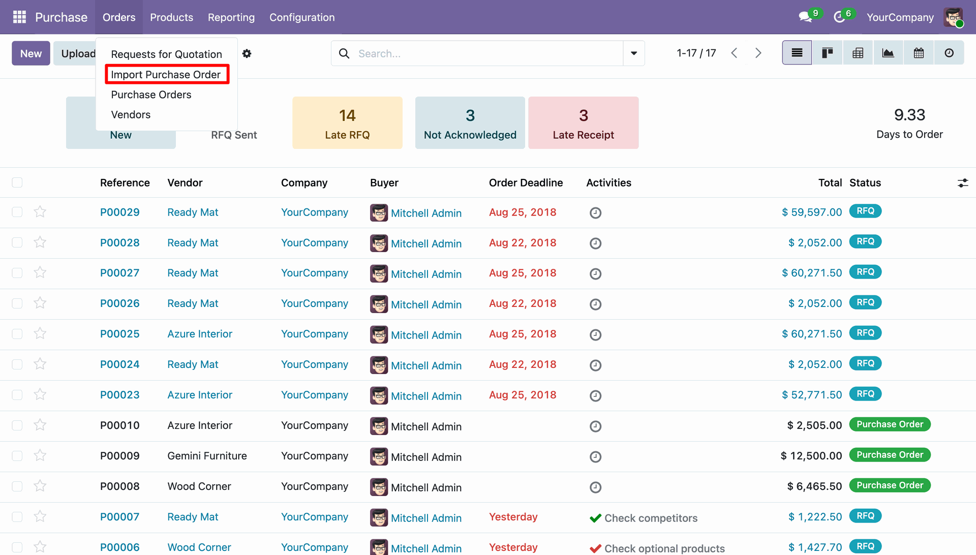 'Import Purchase Order' menu in purchase