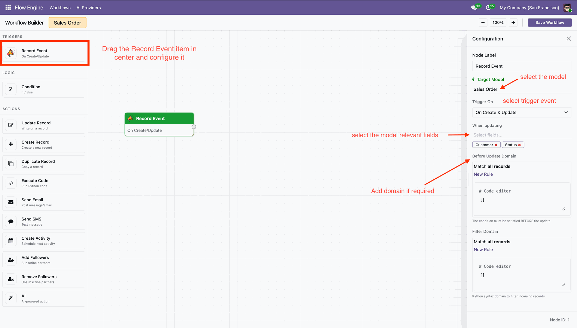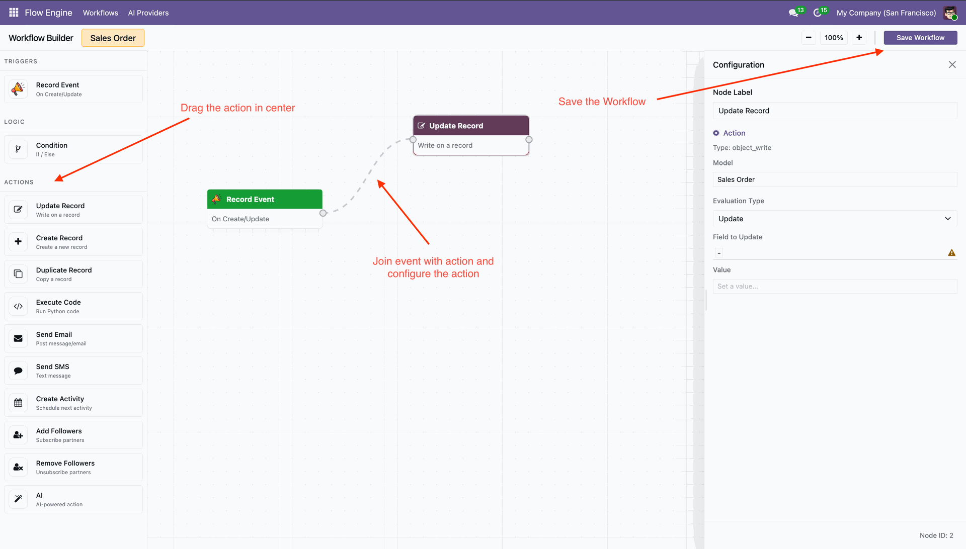 Create workflows for any Odoo model and automate processes based on specific business objects.