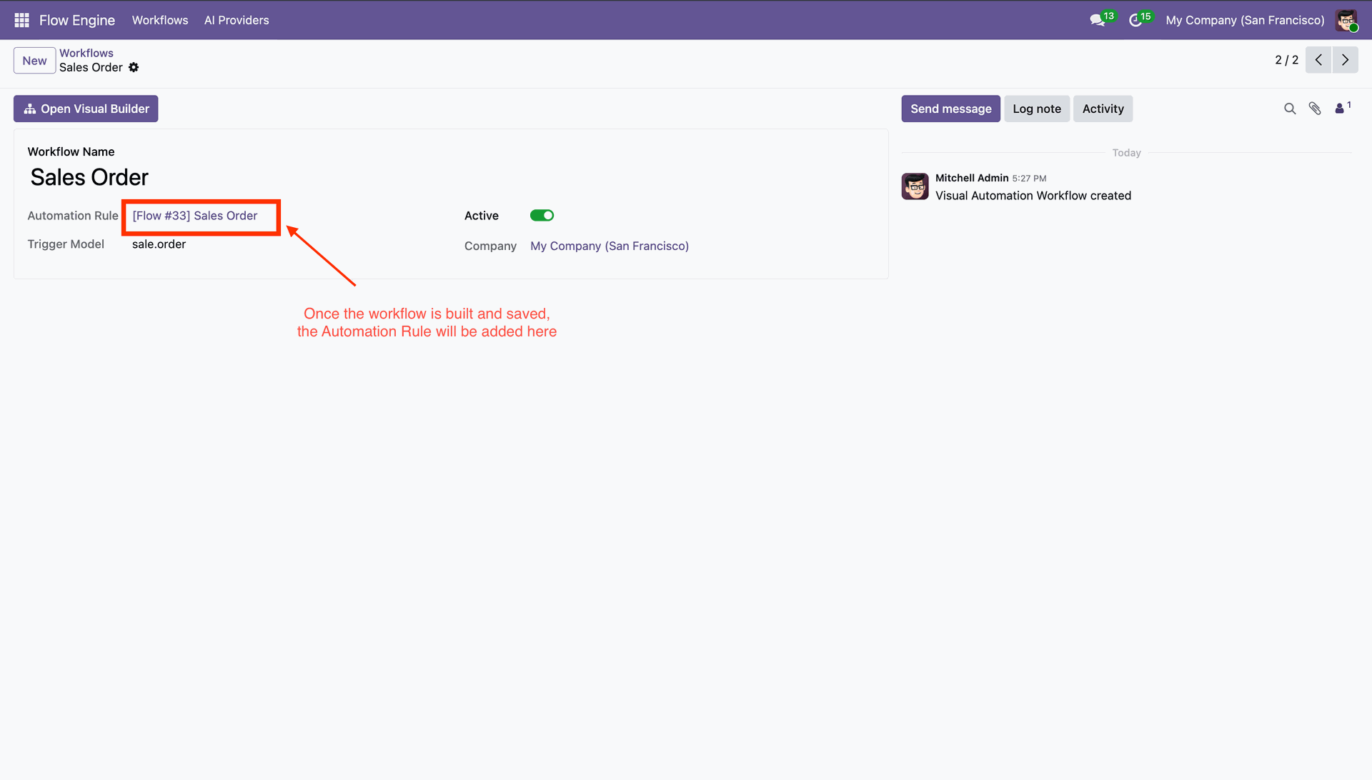 'Automation Rules' field shows created workflow. You can active/deactive from toggle.