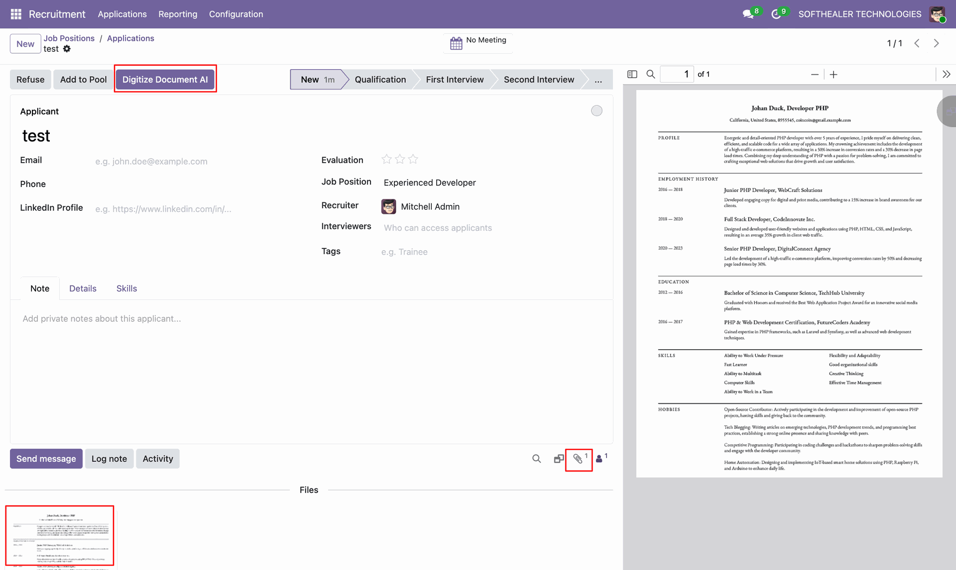 Click Digitize Document AI and then process Resume/CV to extract structured data.