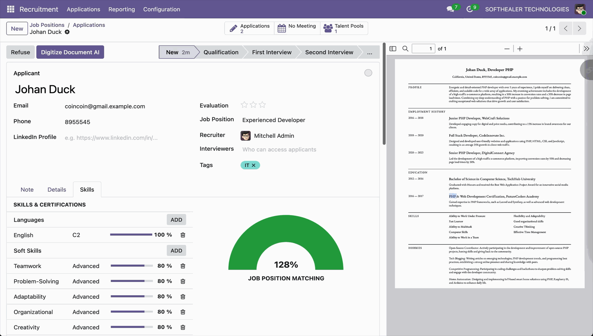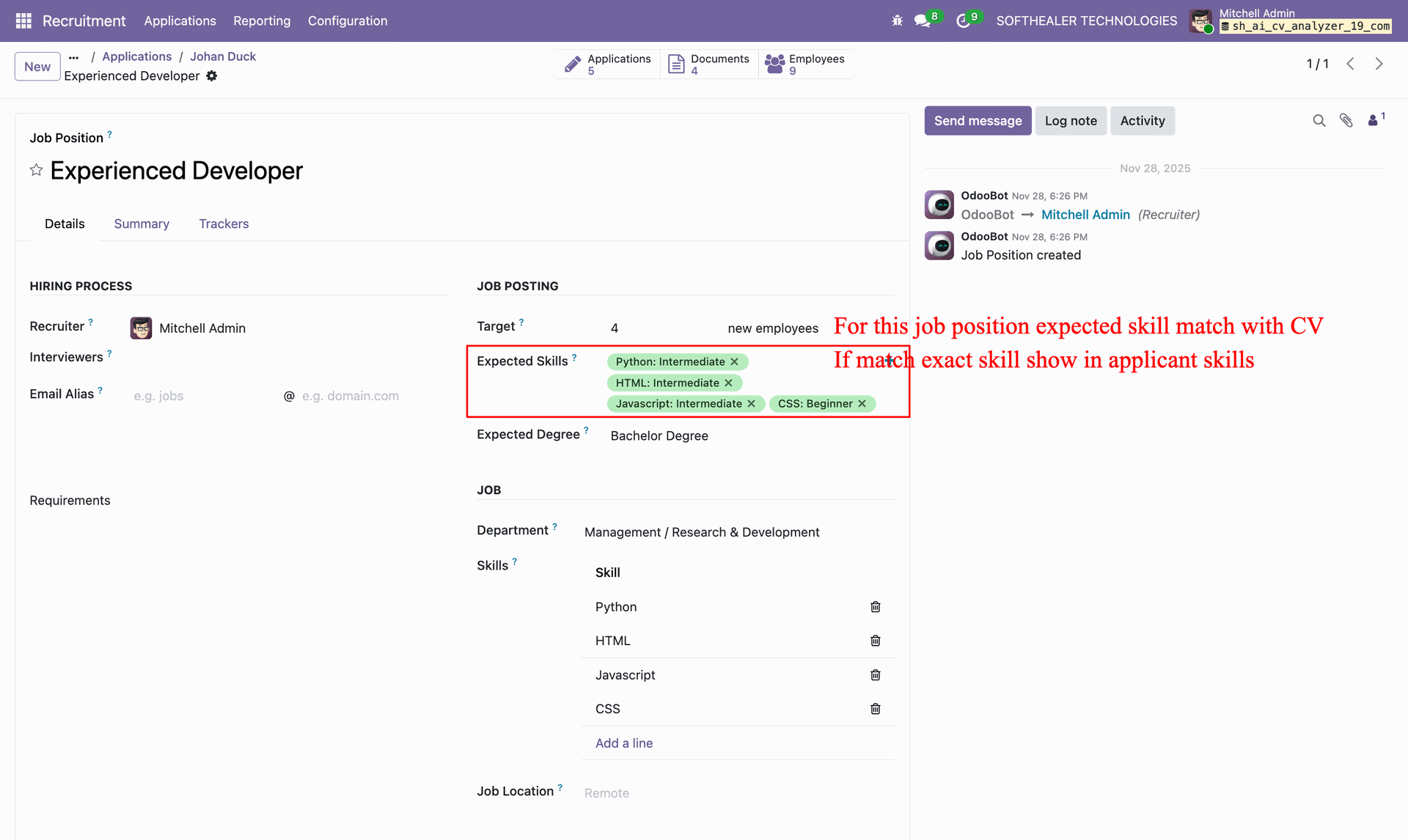 Set Expected Skills in Job Position and then compare with applicant Resume/CV match.