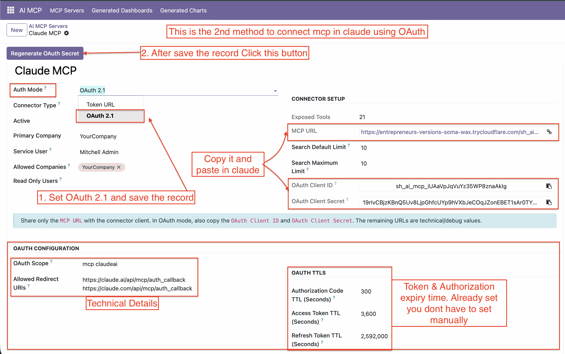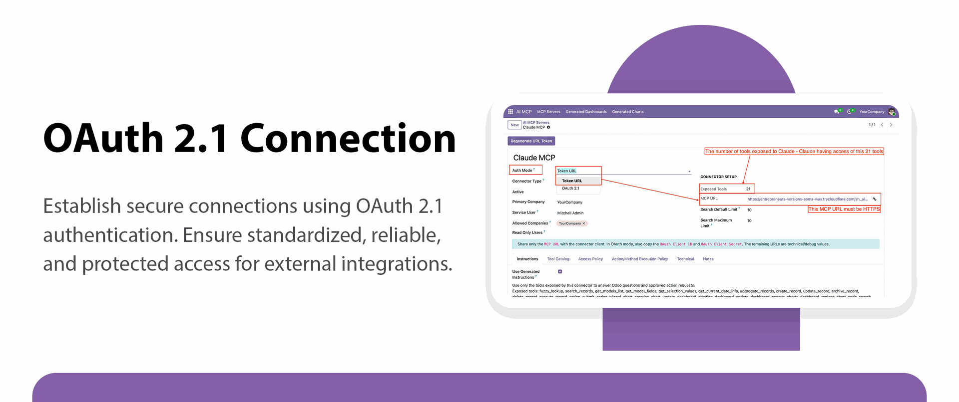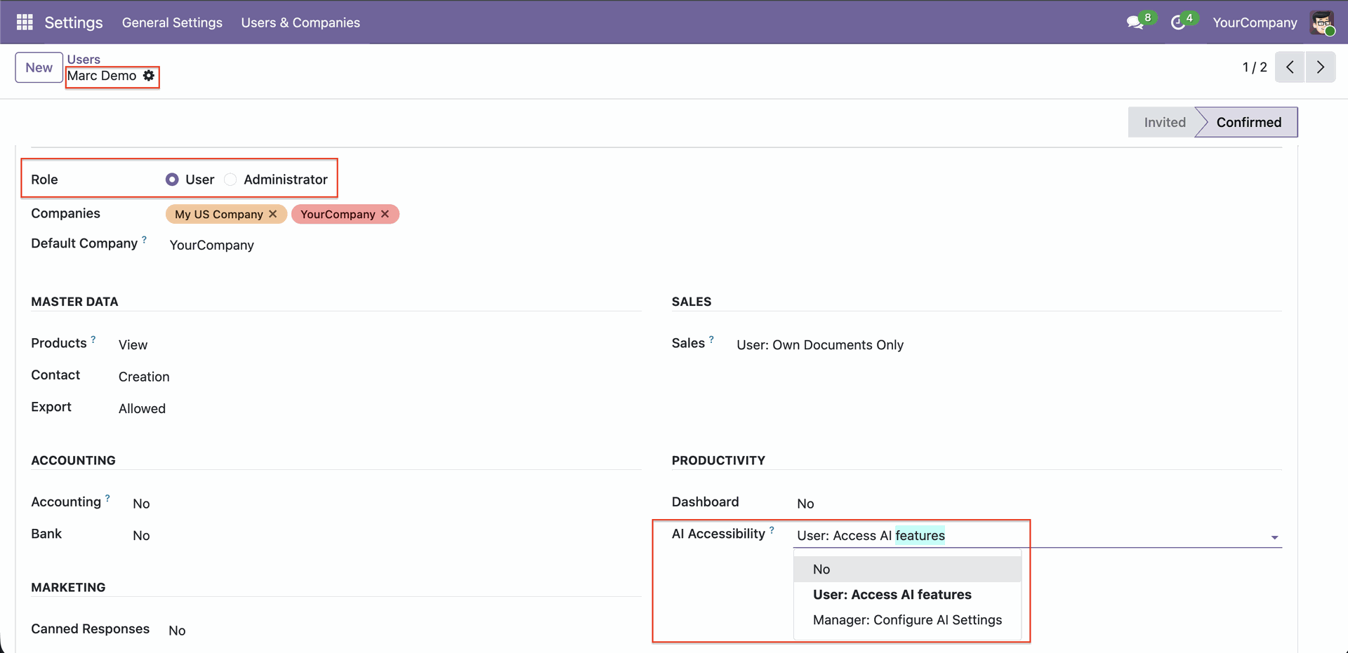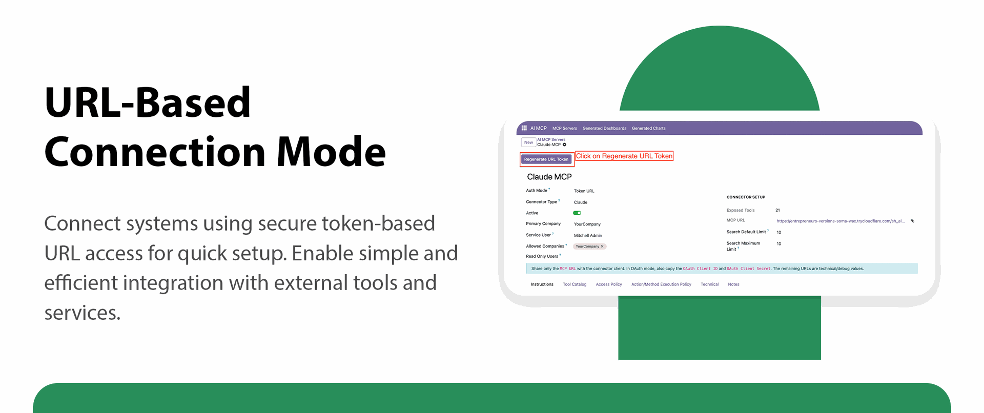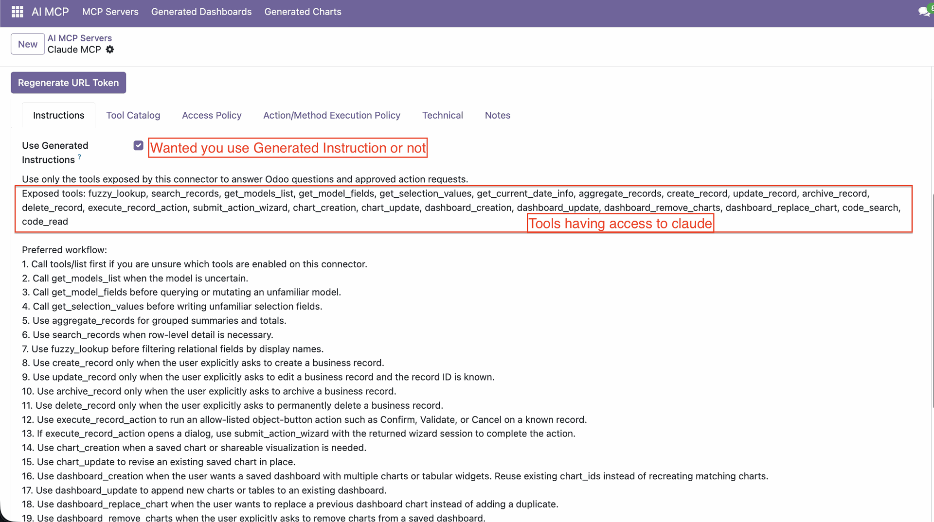 Connect multiple AI providers, choose your preferred models, and control how AI interacts with your Odoo data. Define access rules to ensure AI only creates, updates, or archives records within permitted boundaries — keeping your system secure and compliant.