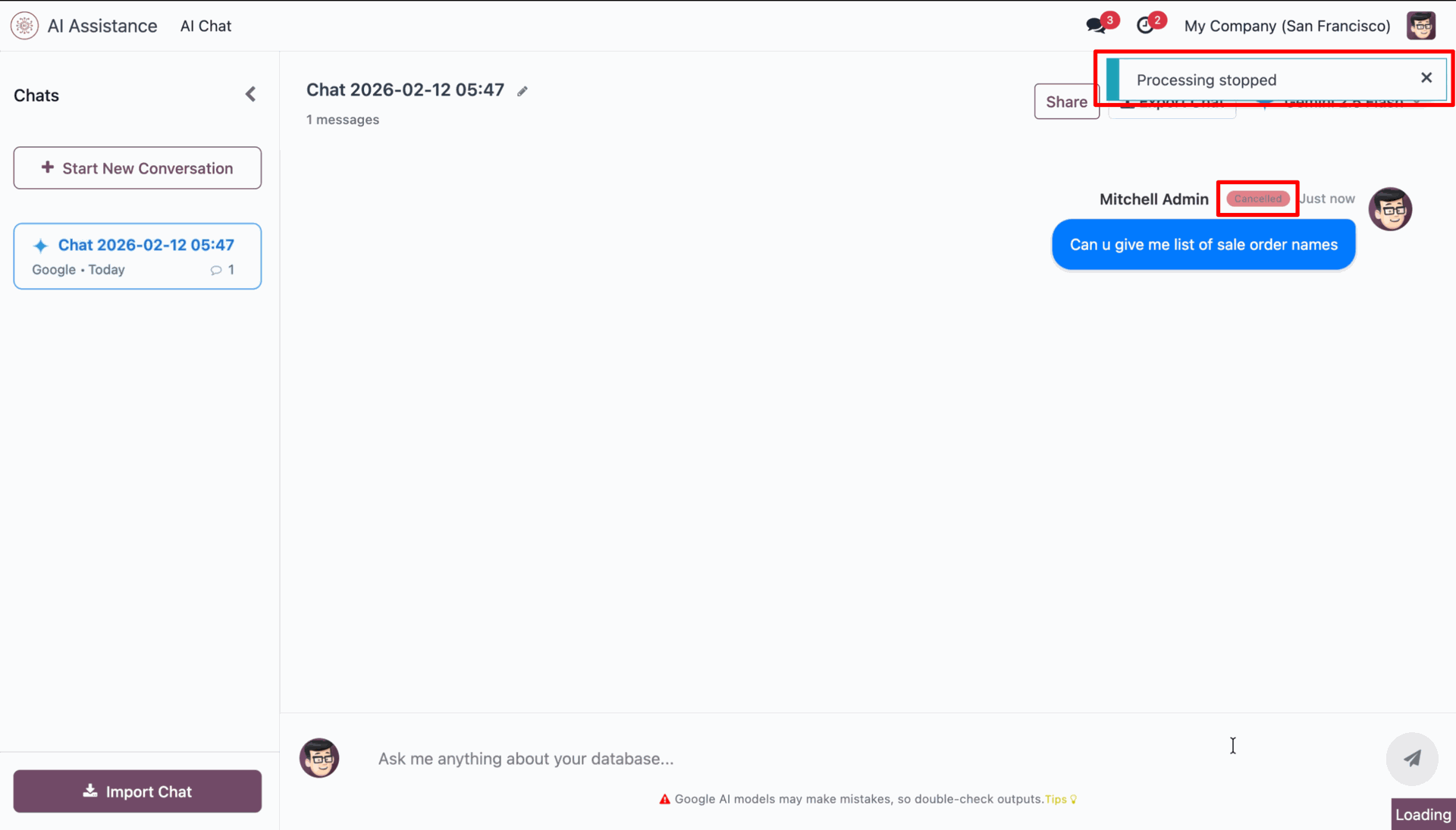 AI Chat requests to show all confirmed sale orders, so AI will not give a list and display a message like below.