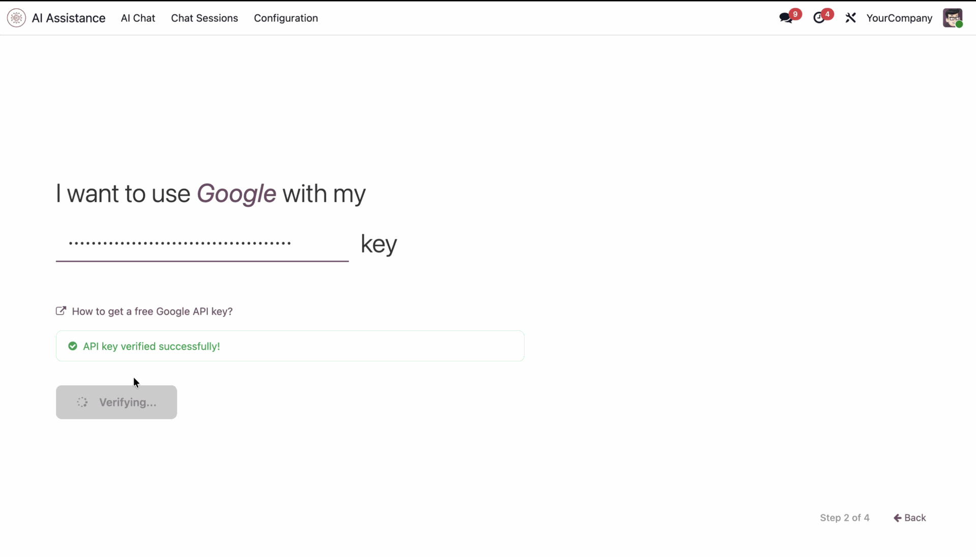 Enter your API key, and click 'Verify & Continue'.