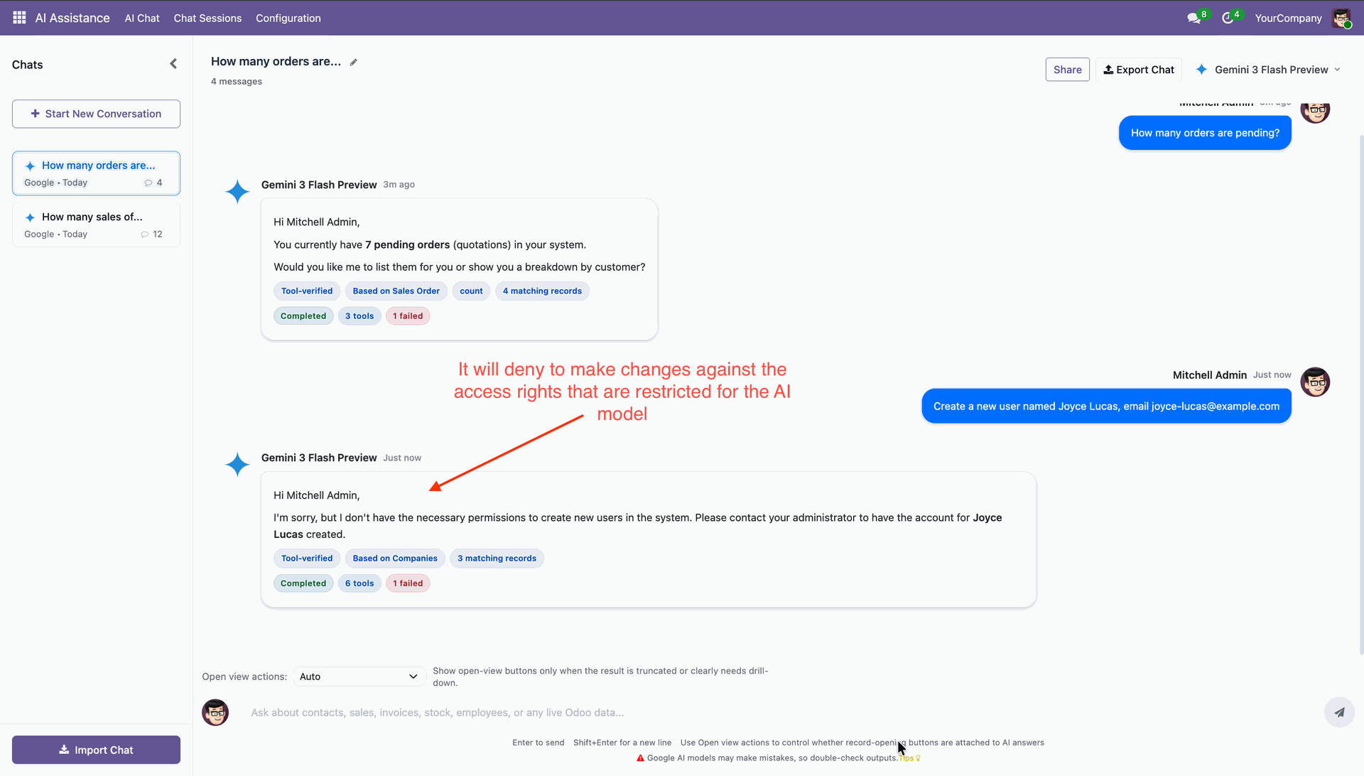 AI Chat requests to show all confirmed sale orders from the admin role.