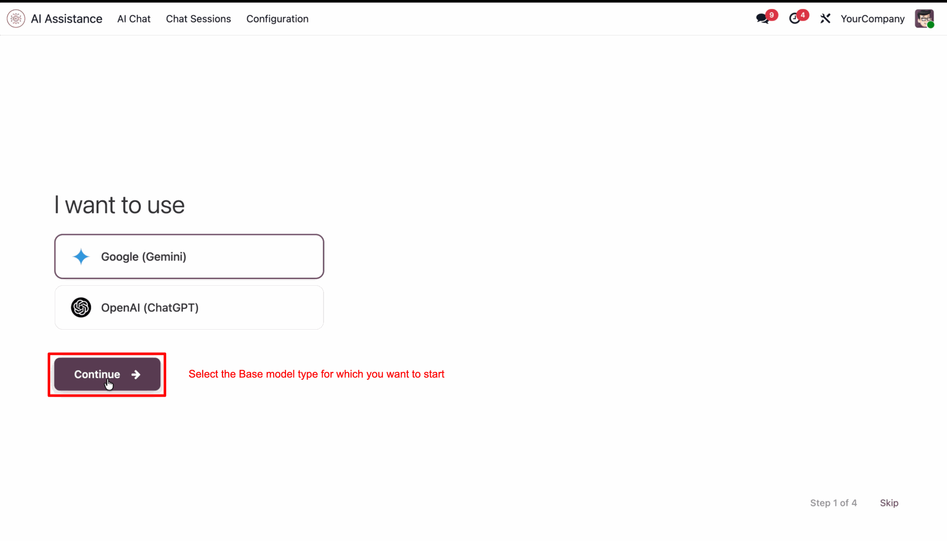 Select the model and click 'Continue'.