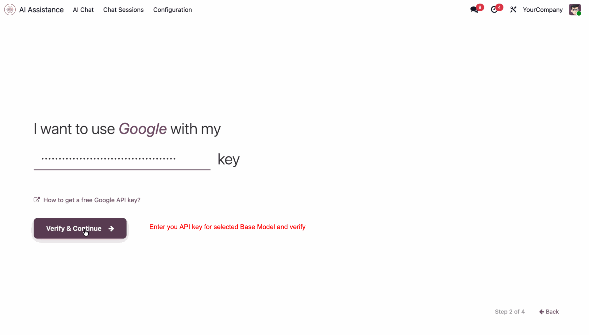 Enter your API key, and click 'Verify & Continue'.