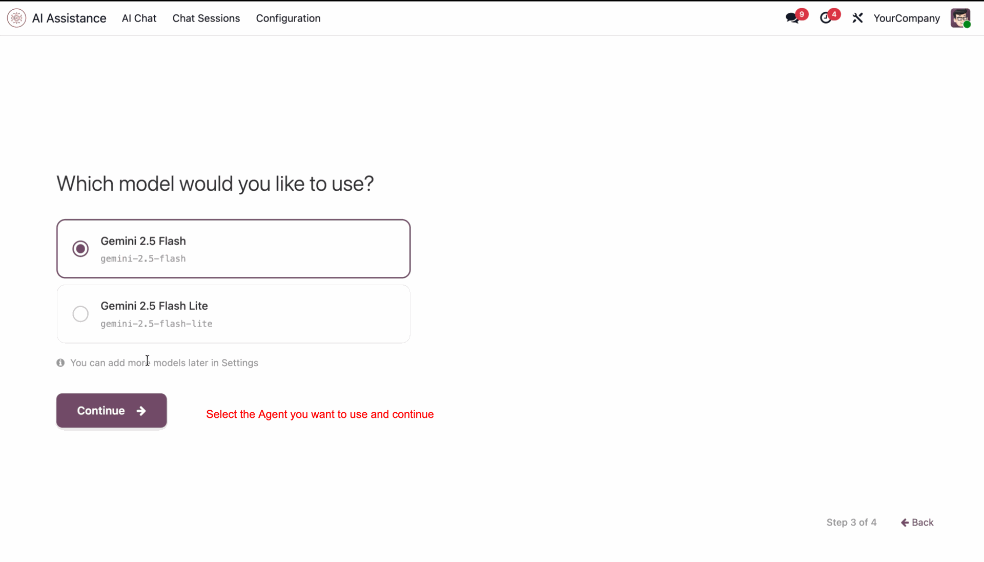 Select the agent and click 'Continue'.