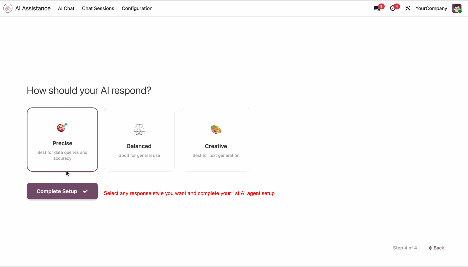 Select response style and complete setup.