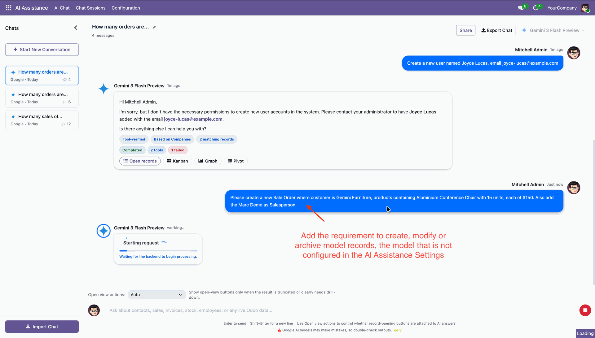 AI Chat requests to show all confirmed sale orders from the admin role.