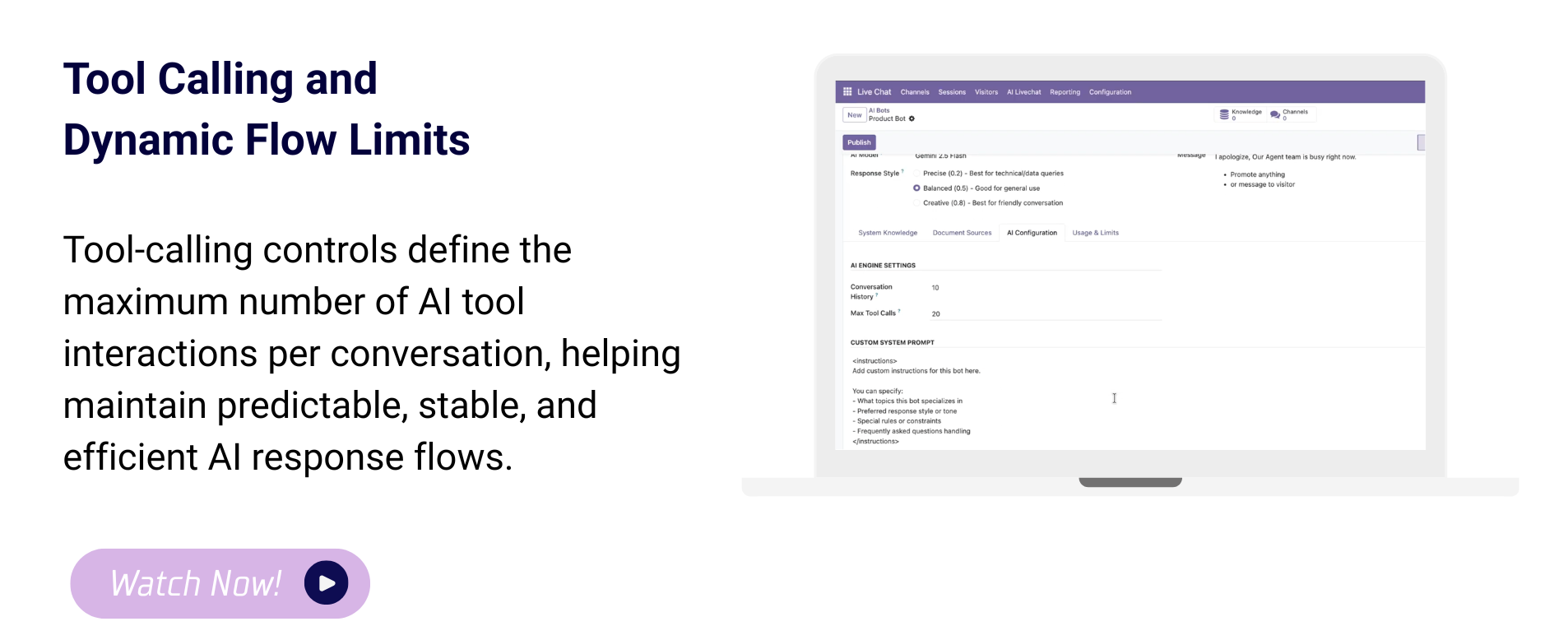 You can set a limit on the number of system actions the AI can perform within a single conversation.