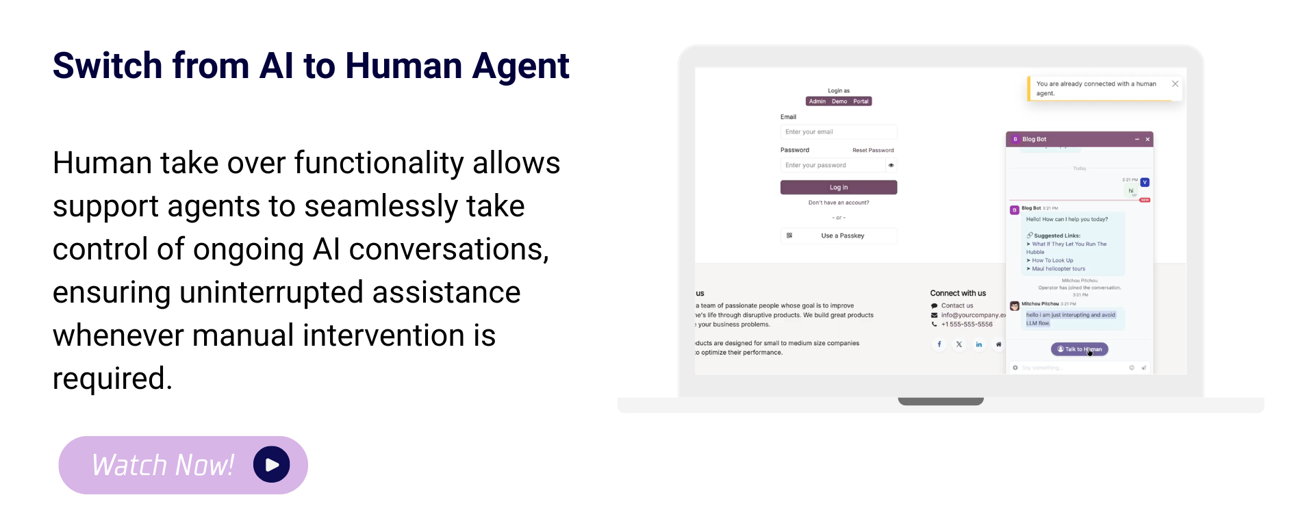 ![]() | Switch from AI to Human Agent |