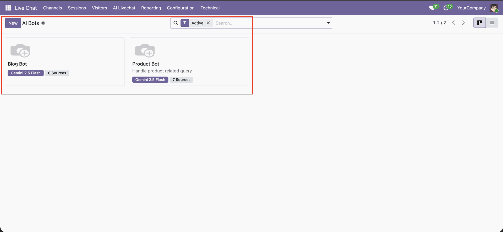 You can manage multiple bots independently for different use cases or departments.