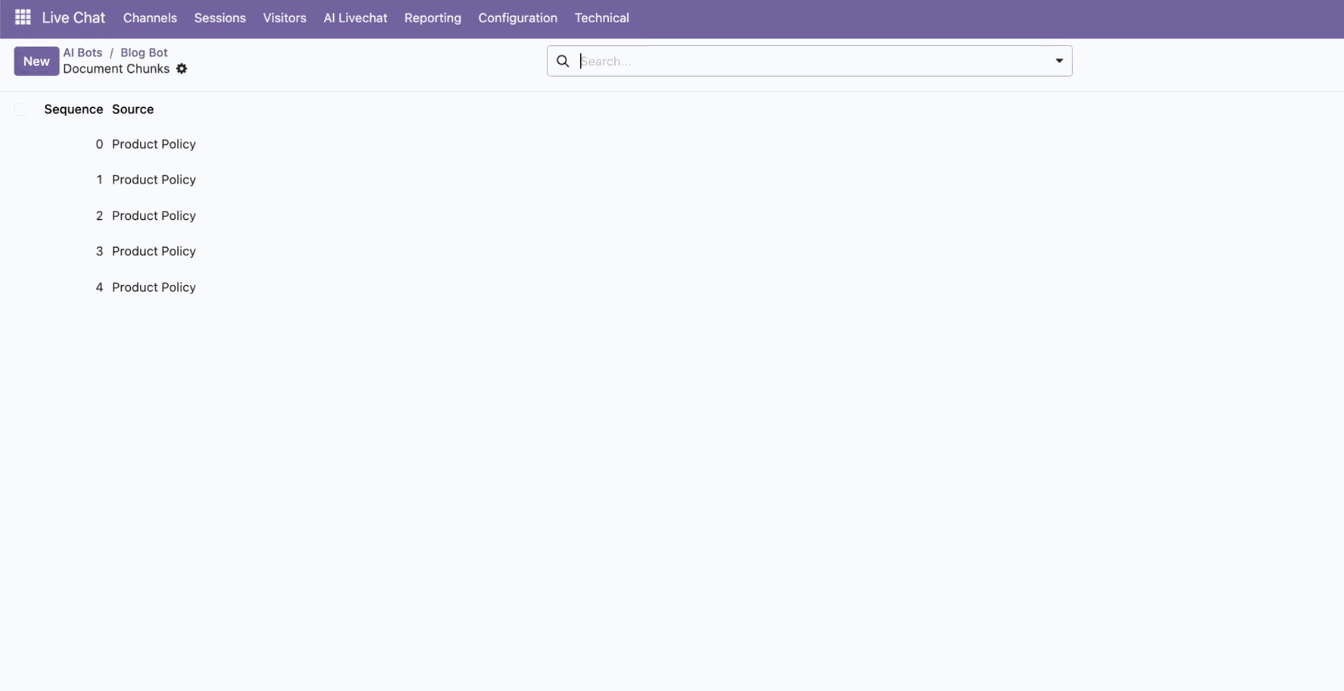 In the bot form view, click on the "Chunks" icon.