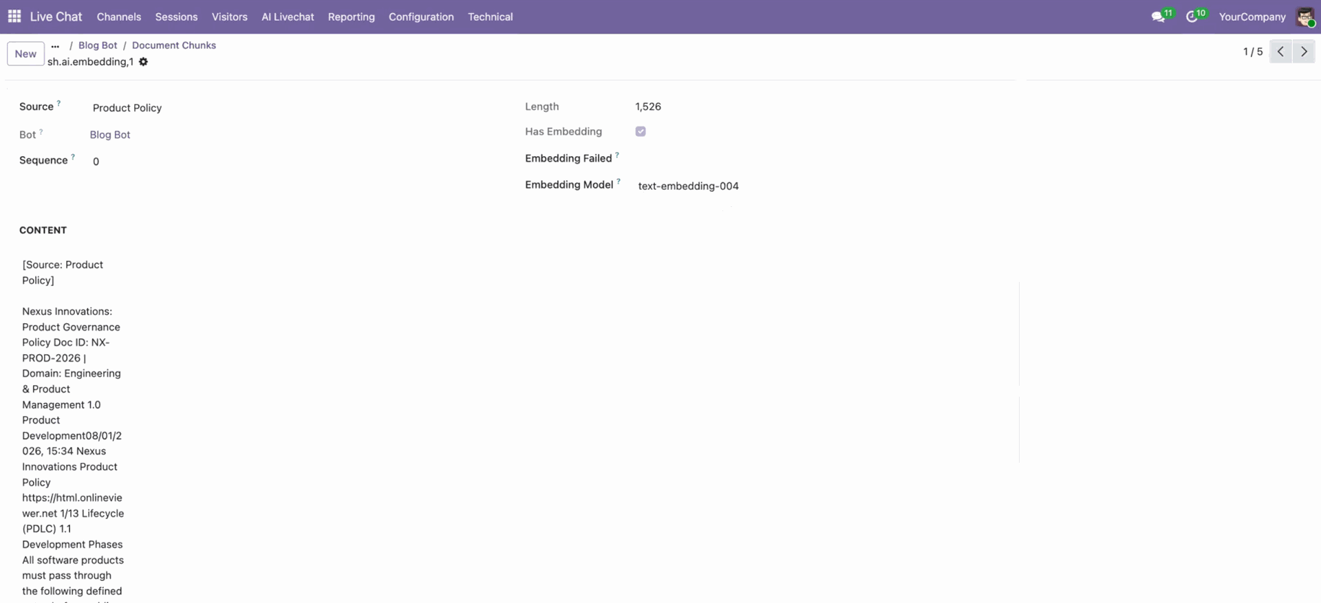 In the document chunks view, you can configure details.