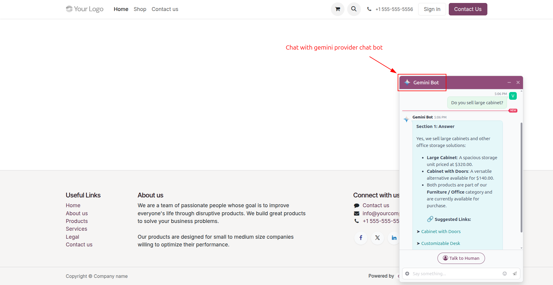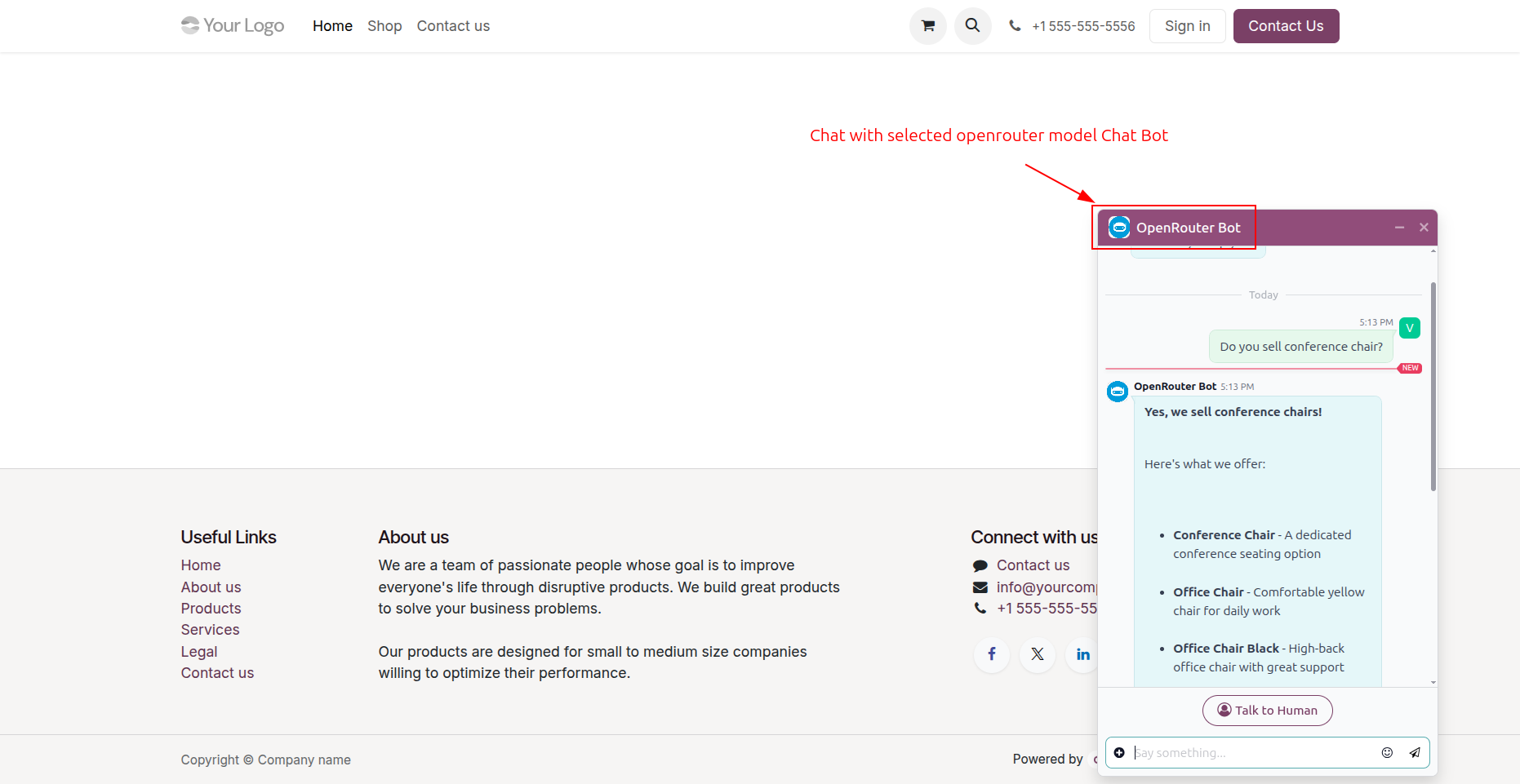 Chatbot as per configuration.