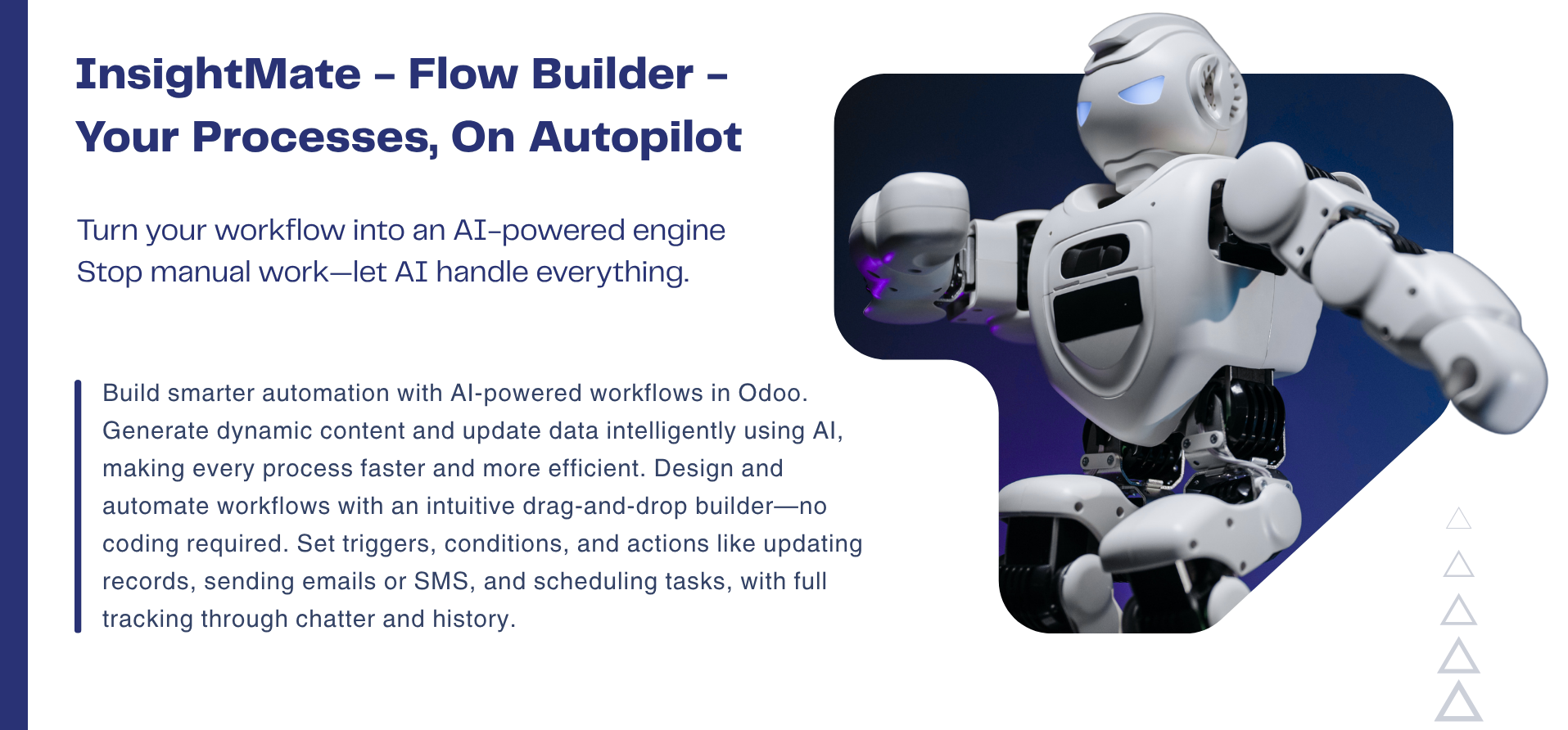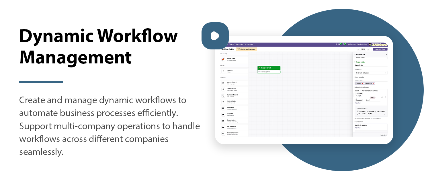 Create workflows for any Odoo model and automate processes based on specific business objects.